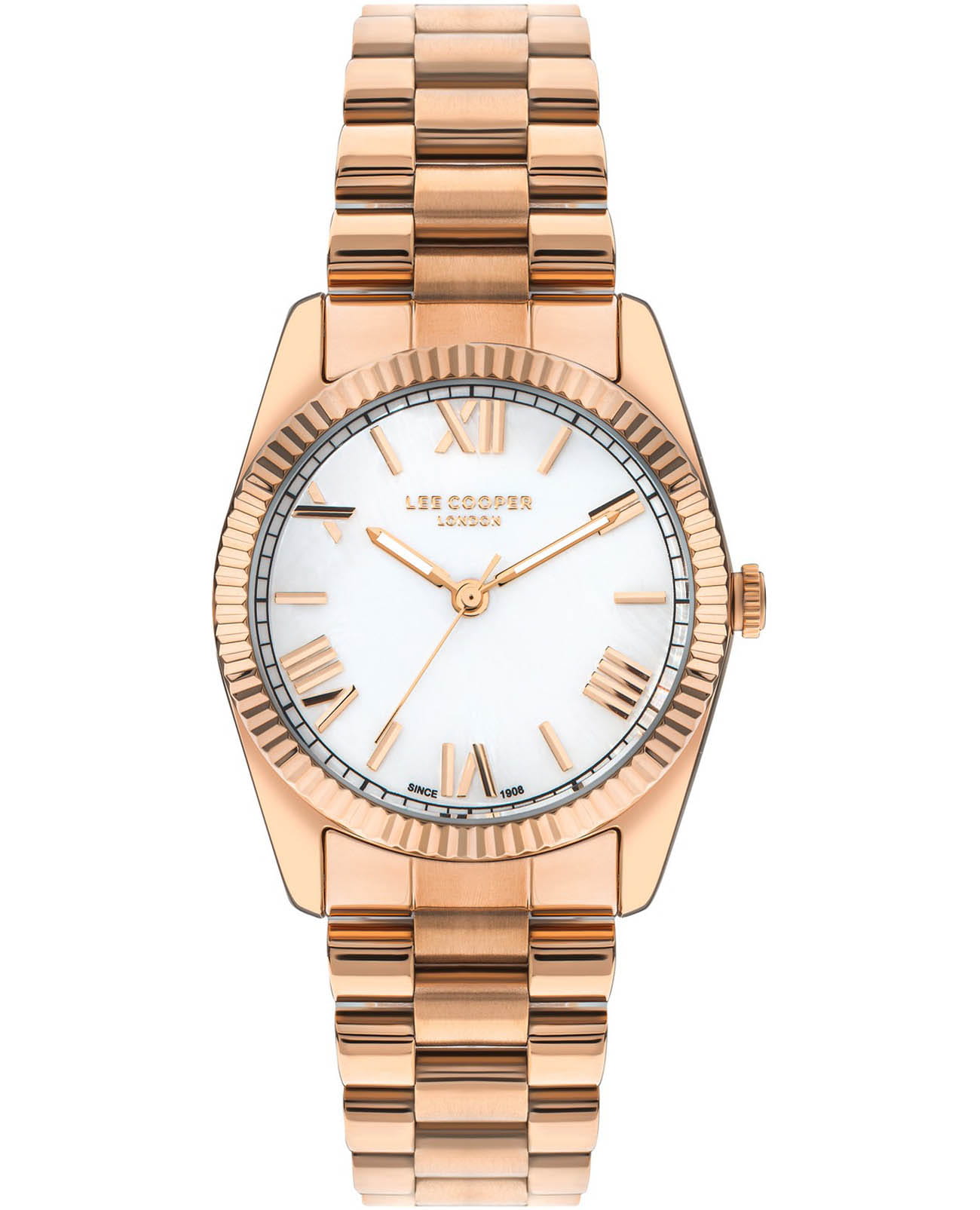 Женские часы Lee Cooper LC07825.420 выполнены в классическом стиле и сочетают строгий дизайн с надёжным механизмом. Модель оснащена кварцевым механизмом, обеспечивающим точность хода и минимальное обслуживание. Корпус имеет размер 36 мм, изготовлен из суперметалла с IP-покрытиемIP-покрытиеМетод ионного напыления. Демонстрирует повышенную устойчивость к истиранию, окислению и химическим веществам. Под воздействием высокого давления и температуры около 1500°C молекулы металла надёжно соединяются с частицами корпуса часов., гарантирует комфорт при ношении. Изящный циферблат дополнен штрихами и римскими цифрами для чёткого отсчёта времени. Защиту циферблата обеспечивает минеральное стеклоМинеральное стеклоМинеральное стекло представляет собой искусственно выращенный минерал кварца. Такое стекло отличается особой устойчивостью к повреждениям и царапинам. Уступает по некоторым качествам сапфировому стеклу., устойчивое к мелким механическим повреждениям. Стальной браслет с IP-покрытиемIP-покрытиеМетод ионного напыления. Демонстрирует повышенную устойчивость к истиранию, окислению и химическим веществам. Под воздействием высокого давления и температуры около 1500°C молекулы металла надёжно соединяются с частицами корпуса часов. на раскладной застёжкеРаскладная застёжкаТакой тип застёжки используется только на браслетах из металла. Она никогда не раскрывается полностью, происходит разделение на 2 и более частей. Раскладывающая застёжка снизит вероятность потери часов к минимуму. гарантирует удобную посадку и надёжную фиксацию на запястье. Стрелки с люминесцентным покрытиемЛюминесцентное покрытиеПозволяет считывать показания времени в темноте. Производители наносят на стрелки, часовые индексы, безель или поверхность циферблата светонакопительный состав, дающий холодное свечение., обеспечивающим хорошую читаемость в темноте. Водозащита 30WR позволяет использовать часы в повседневных условиях без риска повреждения от случайных брызг воды. Это сочетание классического дизайна, прочности материалов и качества исполнения для уверенных в себе женщин.