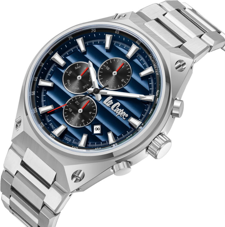 Мужские наручные часы Lee Cooper LC08026.390 — это стильная модель из коллекции Contemporary, сочетающая в себе современный дизайн и функциональность. Часы оснащены кварцевым механизмом японского производства, который обеспечивает высокую точность хода и минимальное энергопотребление. Корпус часов изготовлен из высококачественного суперметалла серебристого цвета, что делает их устойчивыми к внешним воздействиям и придает благородный вид. Синий циферблат украшен стрелками и индексами серебристого цвета, гармонично дополняющими общий дизайн модели. Для защиты циферблата используется минеральное стеклоМинеральное стеклоМинеральное стекло представляет собой искусственно выращенный минерал кварца. Такое стекло отличается особой устойчивостью к повреждениям и царапинам. Уступает по некоторым качествам сапфировому стеклу., устойчивое к царапинам и механическим повреждениям. Корпус имеет круглую форму с диаметром 45 мм, что делает часы заметными и подходящими для повседневной носки. Браслет изготовлен из металла серебристого цвета, гармонично дополняя общий дизайн модели. Модель обладает водонепроницаемостью до 50 метров (5 АТМ), что позволяет использовать часы в повседневной жизни, включая контакт с водой при мытье рук или дожде. Эти часы станут идеальным выбором для мужчин, ценящих стиль, качество и функциональность.