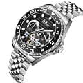 Мужские наручные часы-скелетоны Lee Cooper LC08192.350 механические с автоподзаводом, обеспечивающие высокую точность хода и надежность. Корпус часов выполнен из суперметалла серебристого цвета, диаметром 42 мм, что делает их устойчивыми к внешним воздействиям и придает благородный вид. Циферблат украшен классическими стрелками и метками с люминесцентным покрытиемЛюминесцентное покрытиеПозволяет считывать показания времени в темноте. Производители наносят на стрелки, часовые индексы, безель или поверхность циферблата светонакопительный состав, дающий холодное свечение., гармонично дополняющим общий дизайн модели. Для защиты циферблата используется минеральное стеклоМинеральное стеклоМинеральное стекло представляет собой искусственно выращенный минерал кварца. Такое стекло отличается особой устойчивостью к повреждениям и царапинам. Уступает по некоторым качествам сапфировому стеклу., устойчивое к царапинам и механическим повреждениям. БезельБезельВнешний ободок, закрепляющий стекло. В спортивных часах так называется поворотное кольцо с делениями на циферблате, выполняет роль таймера – замеряет отрезки времени на шкале. Неподвижный безель – элемент декора. Однонаправленно вращающийся безель на дайверских часах позволяет фиксировать моменты погружения и выныривания на поверхность. с IP-покрытиемIP-покрытиеМетод ионного напыления. Демонстрирует повышенную устойчивость к истиранию, окислению и химическим веществам. Под воздействием высокого давления и температуры около 1500°C молекулы металла надёжно соединяются с частицами корпуса часов. черного цвета. Стальной браслет на застёжке-бабочке с кнопкамиЗастёжка "бабочка"Такой вид застёжки дополняется предохранителями, помогающими избежать случайного раскрытия браслета. Обладают изящным исполнением. обеспечивает комфортное и безопасное ношение. Часы обладают водонепроницаемостью до 50 метров (5 АТМ), что позволяет использовать их в повседневной жизни, включая контакт с водой при мытье рук или дожде. Эти часы станут идеальным выбором для мужчин, ценящих стиль, качество и функциональность.