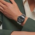 Мужские кварцевые швейцарские часы Longines Conquest L3.759.4.58.6. Сапфировое стеклоСапфировое стеклоПрочный и надёжный материал из кристалла сапфира синтетического происхождения, характеризующийся особой твёрдостью и устойчивостью к царапинам и повреждениям. с антибликовым покрытием, устойчивое к мелким механическим повреждениям. Корпус часов изготовлен из нержавеющей стали. Вращающийся стальной безельБезельВнешний ободок, закрепляющий стекло. В спортивных часах так называется поворотное кольцо с делениями на циферблате, выполняет роль таймера – замеряет отрезки времени на шкале. Неподвижный безель – элемент декора. Однонаправленно вращающийся безель на дайверских часах позволяет фиксировать моменты погружения и выныривания на поверхность. с люминесцентным покрытиемЛюминесцентное покрытиеПозволяет считывать показания времени в темноте. Производители наносят на стрелки, часовые индексы, безель или поверхность циферблата светонакопительный состав, дающий холодное свечение. Superluminova из нержавеющей стали с PVD-покрытиемPVDУльтратонкое покрытие наносится в технике вакуумного напыления, сочетает в себе нитрид титана особой прочности со слоем золота или оксида хрома. Несёт в себе декоративную или защитную функцию. и керамики, защищенный от царапин, никогда не изнашивается и не выцветает. Стрелки и метки с люминесцентным покрытиемЛюминесцентное покрытиеПозволяет считывать показания времени в темноте. Производители наносят на стрелки, часовые индексы, безель или поверхность циферблата светонакопительный состав, дающий холодное свечение.. Окошко даты находится в положении 3 часа. Класс водозащиты: 300 метров, позволит плавать, нырять и заниматься другими водными видами спорта. Стальной браслет на раскладной застёжкеРаскладная застёжкаТакой тип застёжки используется только на браслетах из металла. Она никогда не раскрывается полностью, происходит разделение на 2 и более частей. Раскладывающая застёжка снизит вероятность потери часов к минимуму..