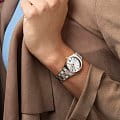 Швейцарский кварцевый калибр L156 — сердце этих часов, которое бьется с безупречной точностью. Сапфировое стеклоСапфировое стеклоПрочный и надёжный материал из кристалла сапфира синтетического происхождения, характеризующийся особой твёрдостью и устойчивостью к царапинам и повреждениям., покрытое многослойным антибликовым покрытиемАнтибликовое покрытиеСлой оксида металла в 0,13-0,3 микрон, благодаря которому стекло часов не бликует и не отражает свет. Антибликовое покрытие уменьшает отражение света в 10 раз, обеспечивая отличную читаемость показателей циферблата., защищает циферблат от внешних воздействий и позволяет наслаждаться его красотой даже при ярком солнечном свете. Стальной браслет с частичным PVD-покрытиемPVDУльтратонкое покрытие наносится в технике вакуумного напыления, сочетает в себе нитрид титана особой прочности со слоем золота или оксида хрома. Несёт в себе декоративную или защитную функцию. на застёжке «бабочка» с кнопкамиЗастёжка "бабочка"Такой вид застёжки дополняется предохранителями, помогающими избежать случайного раскрытия браслета. Обладают изящным исполнением.