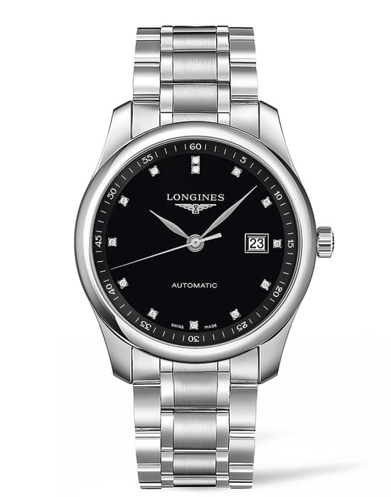Longines Master Collection L2.793.4.57.6 – элегантные мужские часы, сочетающие классический дизайн и современные технологии. Корпус диаметром 40 мм и толщиной 9,35 мм выполнен из нержавеющей стали, обеспечивая долговечность и изысканный внешний вид. Чёрный циферблат украшен 12 бриллиантовыми часовыми метками общим весом 0,055 карата, придающими часам роскошный акцент, а его поверхность защищена сапфировым стекломСапфировое стеклоПрочный и надёжный материал из кристалла сапфира синтетического происхождения, характеризующийся особой твёрдостью и устойчивостью к царапинам и повреждениям., устойчивым к царапинам. Часы оснащены автоматическим механизмом калибра L888, работающим с частотой 25'200 полуколебаний в час и обеспечивающим запас хода до 72 часов. Функциональность модели включает индикацию часов, минут, секунд и даты, расположенной в окошке на отметке «3 часа». Браслет из нержавеющей стали оснащён тройной застежкой с системой блокировки и кнопкой, обеспечивающей надёжную фиксацию и комфортное ношение. Водозащита до 30 метров (3 бара) защищает часы от случайных брызг и дождя, однако не рекомендуется использовать их для плавания или погружений.