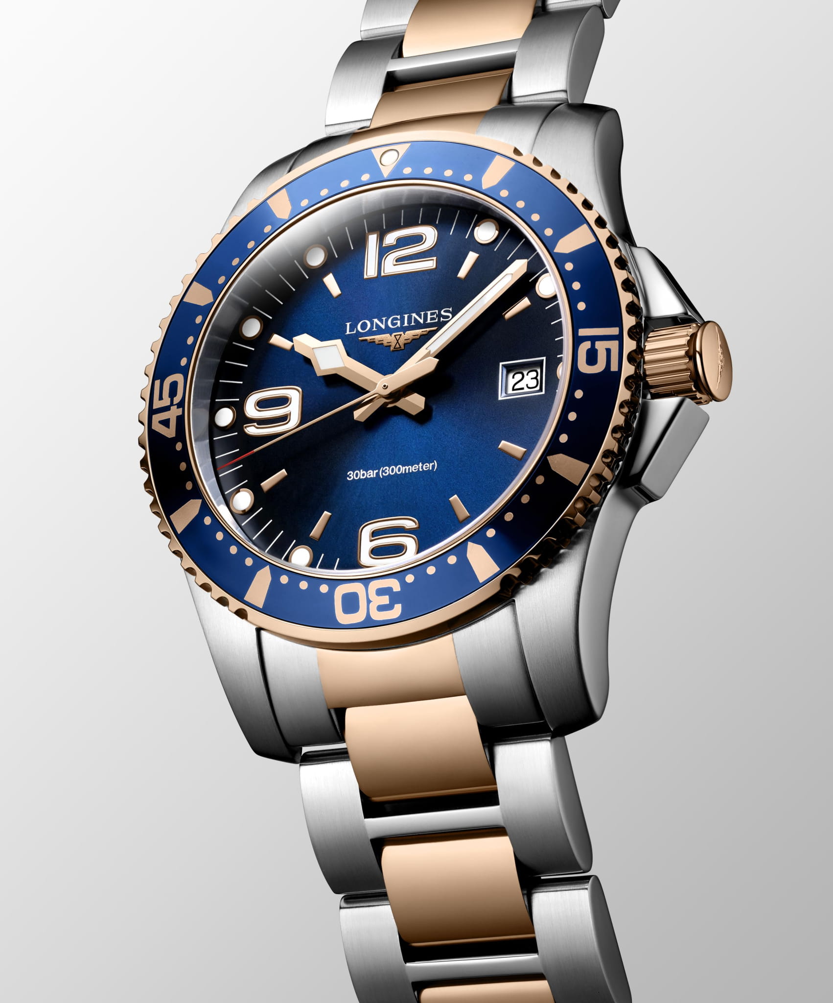 Швейцарский кварцевый механизм L157 отличается высокой точностью хода. Часы выполнены из нержавеющей стали 316L с розовым PVD-покрытиемPVDУльтратонкое покрытие наносится в технике вакуумного напыления, сочетает в себе нитрид титана особой прочности со слоем золота или оксида хрома. Несёт в себе декоративную или защитную функцию.. Сапфировое стеклоСапфировое стеклоПрочный и надёжный материал из кристалла сапфира синтетического происхождения, характеризующийся особой твёрдостью и устойчивостью к царапинам и повреждениям. устойчивое к появлению царапин, обладающее высокой прозрачностью. Водостойкость – 30 бар. Стрелки и метки с люминесцентным покрытиемЛюминесцентное покрытиеПозволяет считывать показания времени в темноте. Производители наносят на стрелки, часовые индексы, безель или поверхность циферблата светонакопительный состав, дающий холодное свечение..