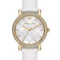 Идеальный аксессуар, который придаст женскому образу завершенность и особый шарм. Женские американские часы Michael Kors Corey MK2985 имеют кварцевый механизм с высокой точностью. Корпус часов изготовлен из нержавеющей стали с золотистым PVD-покрытиемPVDУльтратонкое покрытие наносится в технике вакуумного напыления, сочетает в себе нитрид титана особой прочности со слоем золота или оксида хрома. Несёт в себе декоративную или защитную функцию., диаметром 38 мм. Циферблат с метками в виде штрихов защищен минеральным стекломМинеральное стеклоМинеральное стекло представляет собой искусственно выращенный минерал кварца. Такое стекло отличается особой устойчивостью к повреждениям и царапинам. Уступает по некоторым качествам сапфировому стеклу., что обеспечивает надежную защиту от царапин и повреждений. БезельБезельВнешний ободок, закрепляющий стекло. В спортивных часах так называется поворотное кольцо с делениями на циферблате, выполняет роль таймера – замеряет отрезки времени на шкале. Неподвижный безель – элемент декора. Однонаправленно вращающийся безель на дайверских часах позволяет фиксировать моменты погружения и выныривания на поверхность. украшен кристаллами. Класс водозащиты: 30 метров позволит защитить корпус от случайных брызг или капель дождя. Удобный кожаный белый ремешок с классической застежкой обеспечивает надежную фиксацию на запястье и легкость в надевании и снятии. Эти часы станут отличным дополнением к любому наряду, подчеркивая индивидуальность и стиль их обладательницы.