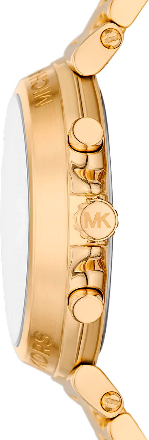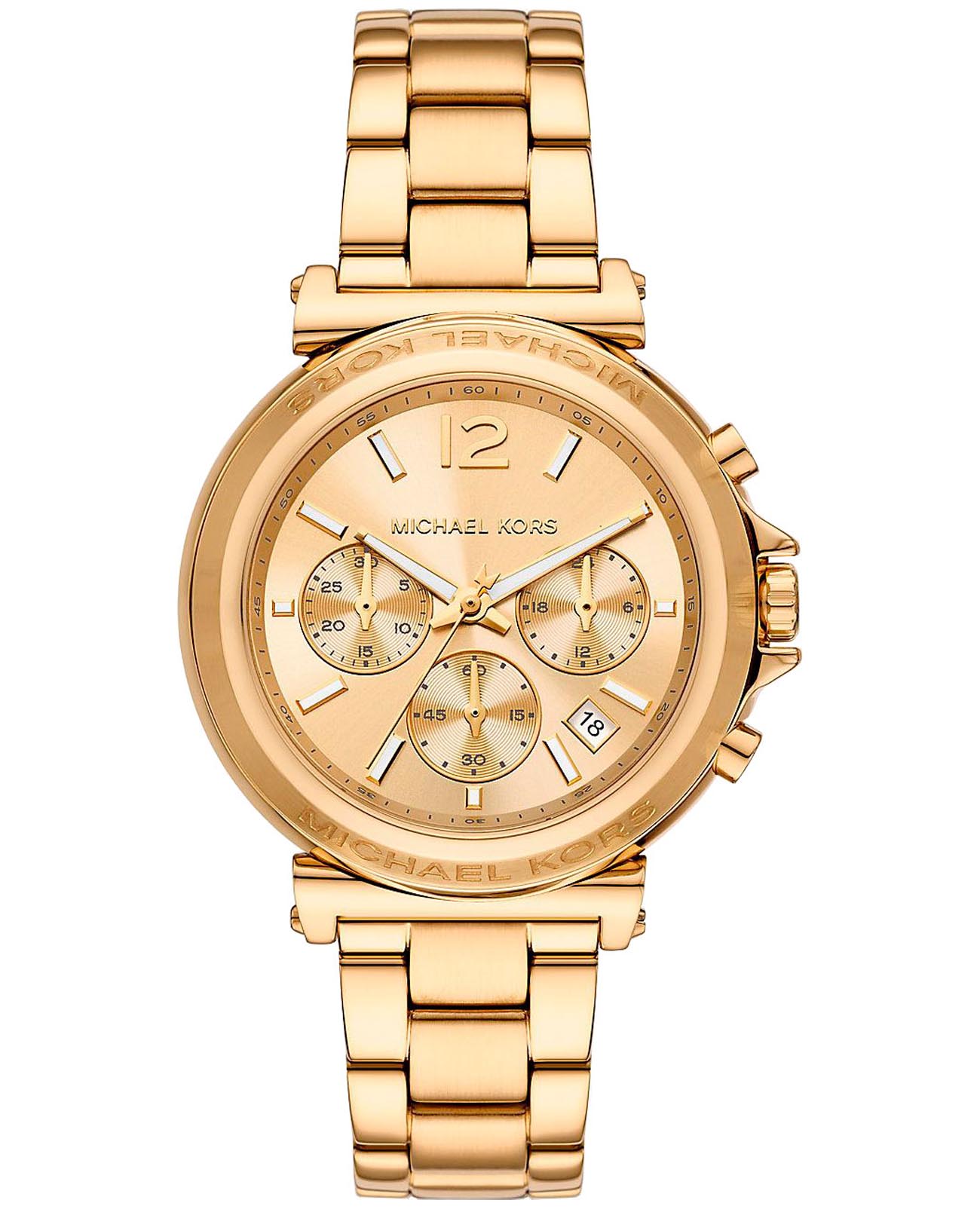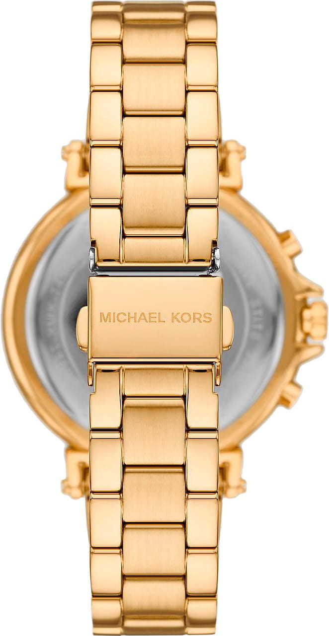 Откройте для себя сочетание современного стиля и функциональности в часах Michael Kors Maren MK7493 — потрясающие часы-хронографХронографФункция позволяет измерять отрезки времени с особой точностью: часы, минуты, секунды. Верным признаком хронографа является наличие на циферблате 3 дополнительных окошек-счётчиков. с секундомеромСекундомерСекундоме́р — прибор, способный измерять интервалы времени с точностью до долей секунды., созданных для женщин, которые ценят изысканность и утонченность. Эти часы легко дополнят любой образ и станут идеальным аксессуаром как для повседневного, так и для официального мероприятия. Кварцевый механизм с высокой точностью. Корпус часов изготовлен из нержавеющей стали с PVD-покрытиемPVDУльтратонкое покрытие наносится в технике вакуумного напыления, сочетает в себе нитрид титана особой прочности со слоем золота или оксида хрома. Несёт в себе декоративную или защитную функцию. золотого цвета, диаметром 40 мм. Циферблат с метками в виде штрихов защищен минеральным стекломМинеральное стеклоМинеральное стекло представляет собой искусственно выращенный минерал кварца. Такое стекло отличается особой устойчивостью к повреждениям и царапинам. Уступает по некоторым качествам сапфировому стеклу., что обеспечивает надежную защиту от царапин и повреждений. Класс водозащиты: 50 метров позволит защитить корпус от случайных брызг или капель дождя. Удобный стальной браслет на раскладной застёжкеРаскладная застёжкаТакой тип застёжки используется только на браслетах из металла. Она никогда не раскрывается полностью, происходит разделение на 2 и более частей. Раскладывающая застёжка снизит вероятность потери часов к минимуму. обеспечивает надежную фиксацию на запястье и легкость в надевании и снятии. Стрелки и метки с люминесцентным покрытиемЛюминесцентное покрытиеПозволяет считывать показания времени в темноте. Производители наносят на стрелки, часовые индексы, безель или поверхность циферблата светонакопительный состав, дающий холодное свечение.. Циферблат выполнен по технологии Sunray (солнечные лучи). По краю циферблата нанесена минутная шкала. 24-часовой формат времени для удобства планирования. Заводная головка с защитой.