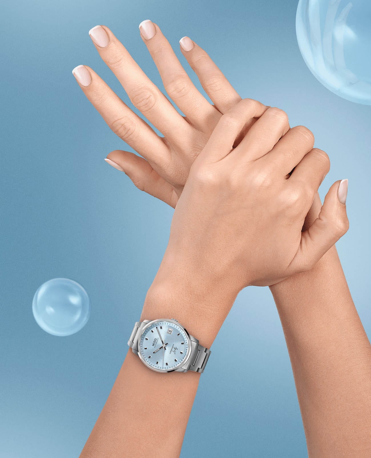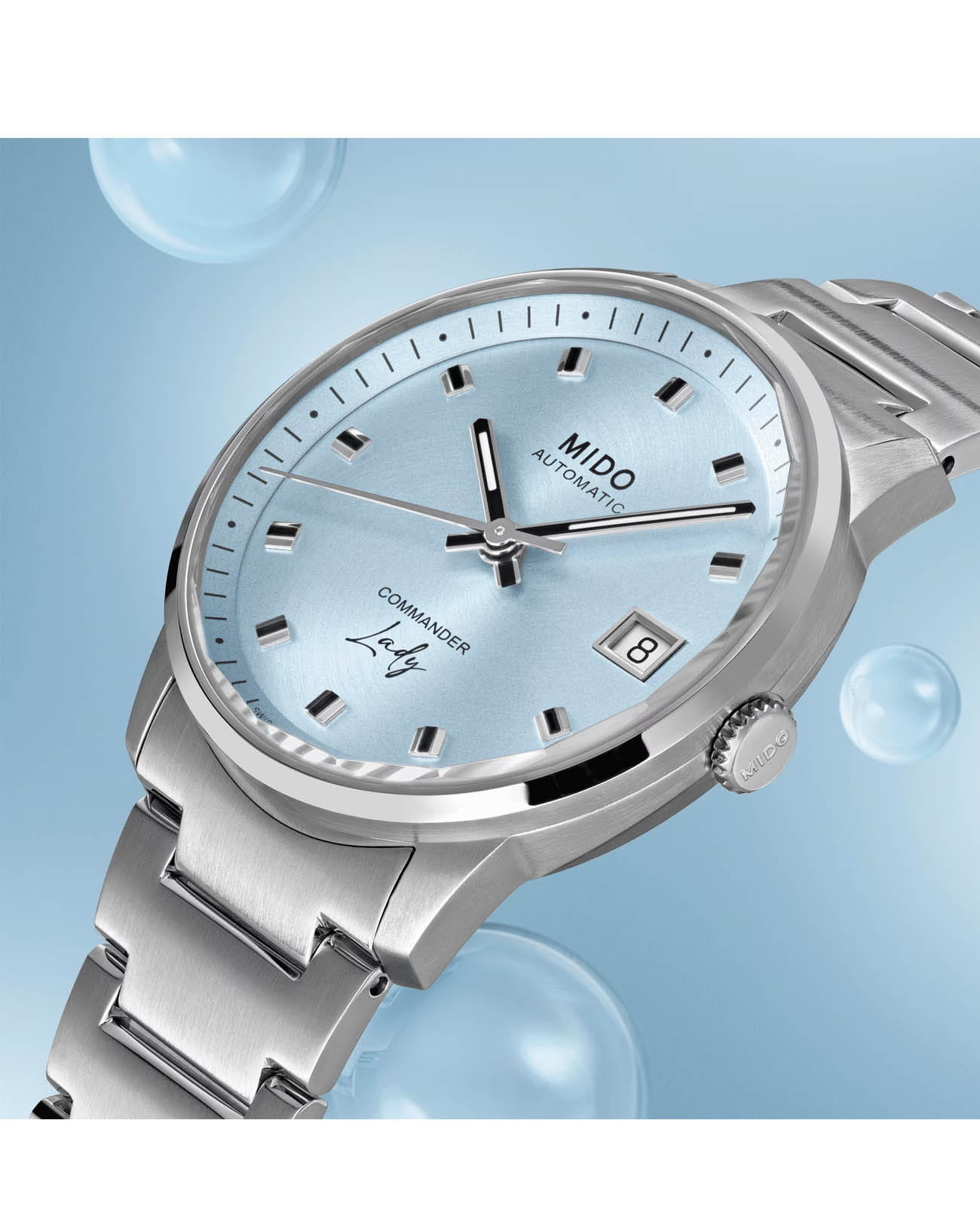 Изысканные и неброские, новые швейцарские механические часы для женщин Mido Commander Lady M021.207.11.041.00, механический механизм (автоматический калибр) с высокой точностью. Сапфировое стеклоСапфировое стеклоПрочный и надёжный материал из кристалла сапфира синтетического происхождения, характеризующийся особой твёрдостью и устойчивостью к царапинам и повреждениям. устойчивое к появлению царапин, обладающее высокой прозрачностью. Идеальный круглый корпус, открывающийся на циферблат, тонкий безель и неброская заводная головка, традиционные стрелки и индексы, превосходный швейцарский автоматический калибр с высокотехнологичной балансировочной пружиной: Commander поражает в этой женской версии. Стрелки с люминесцентным покрытиемЛюминесцентное покрытиеПозволяет считывать показания времени в темноте. Производители наносят на стрелки, часовые индексы, безель или поверхность циферблата светонакопительный состав, дающий холодное свечение.. Окошко даты в положении 3 часов. Класс водозащиты: 50 метров, позволит защитить корпус от случайных брызг или капель дождя. Стальной браслет на раскладной застёжкеРаскладная застёжкаТакой тип застёжки используется только на браслетах из металла. Она никогда не раскрывается полностью, происходит разделение на 2 и более частей. Раскладывающая застёжка снизит вероятность потери часов к минимуму..