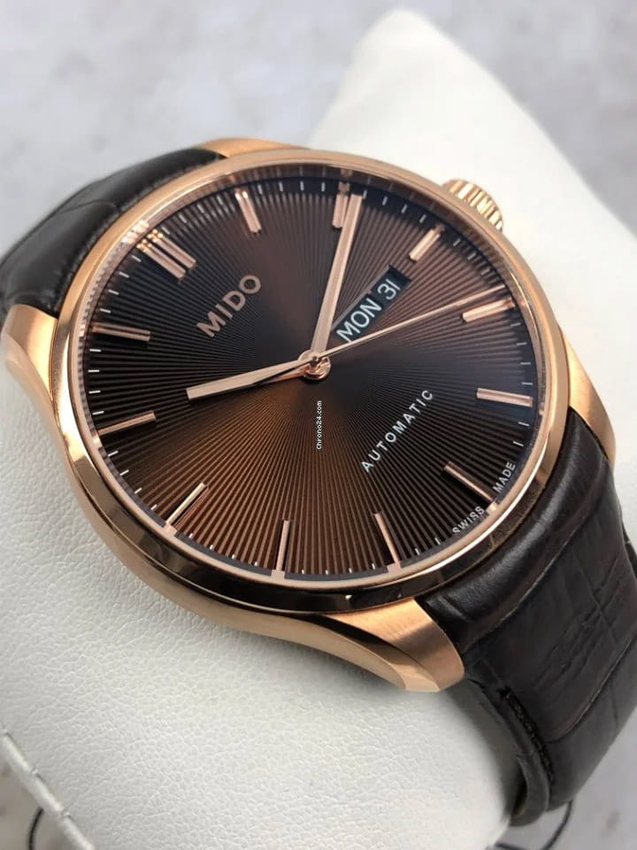 Дизайн модели - результат работы часовщиков, вдохновленных стеклянным куполом лондонского Альберт-холла. Мужские швейцарские механические часы с автоподзаводом Mido Belluna Sunray M024.630.36.291.00, механический механизм (автоматический калибр) с высокой точностью. Сапфировое стеклоСапфировое стеклоПрочный и надёжный материал из кристалла сапфира синтетического происхождения, характеризующийся особой твёрдостью и устойчивостью к царапинам и повреждениям. устойчивое к появлению царапин, обладающее высокой прозрачностью, двойным антибликовым покрытием. Класс водозащиты: 50 метров, позволит защитить корпус от случайных брызг или капель дождя. Корпус часов изготовлен из стали с PVD-покрытиемPVDУльтратонкое покрытие наносится в технике вакуумного напыления, сочетает в себе нитрид титана особой прочности со слоем золота или оксида хрома. Несёт в себе декоративную или защитную функцию.. Окошки дня недели и даты находятся в положении 3 часа. Кожаный ремешок на стандартной застёжке. Циферблат с гильоше «солнечные лучи», завинчивающаяся прозрачная задняя крышка.