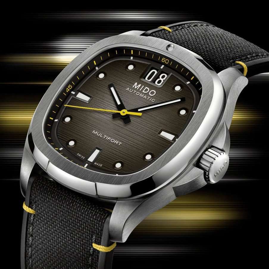 Мужские механические швейцарские часы Mido Multifort TV Big Date M049.526.17.081.01, механический механизм (автоматический калибр) с высокой точностью. Сапфировое стеклоСапфировое стеклоПрочный и надёжный материал из кристалла сапфира синтетического происхождения, характеризующийся особой твёрдостью и устойчивостью к царапинам и повреждениям. устойчивое к появлению царапин, обладающее высокой прозрачностью. Корпус часов изготовлен из нержавеющей стали в форме телевизора, столь же впечатляющий, сколь и точный, благодаря своему мощному механическому механизму. Современный и динамичный дизайн этих швейцарских часов подчеркивается ярким горизонтальным циферблатом с матовой отделкой, а также их отличительной функцией: большой датой в положении 12 часов. Стрелки с люминесцентным покрытиемЛюминесцентное покрытиеПозволяет считывать показания времени в темноте. Производители наносят на стрелки, часовые индексы, безель или поверхность циферблата светонакопительный состав, дающий холодное свечение.. Мощный автоматический механизм последнего поколения Calibre 80 оснащен высокотехнологичной балансировочной пружиной Nivachron ™ , которая обеспечивает исключительную устойчивость к ударам и магнитным полям. Класс водозащиты: 100 метров, позволит плавать, нырять и заниматься другими водными видами спорта. Тканевый ремешок на стандартной застежке.