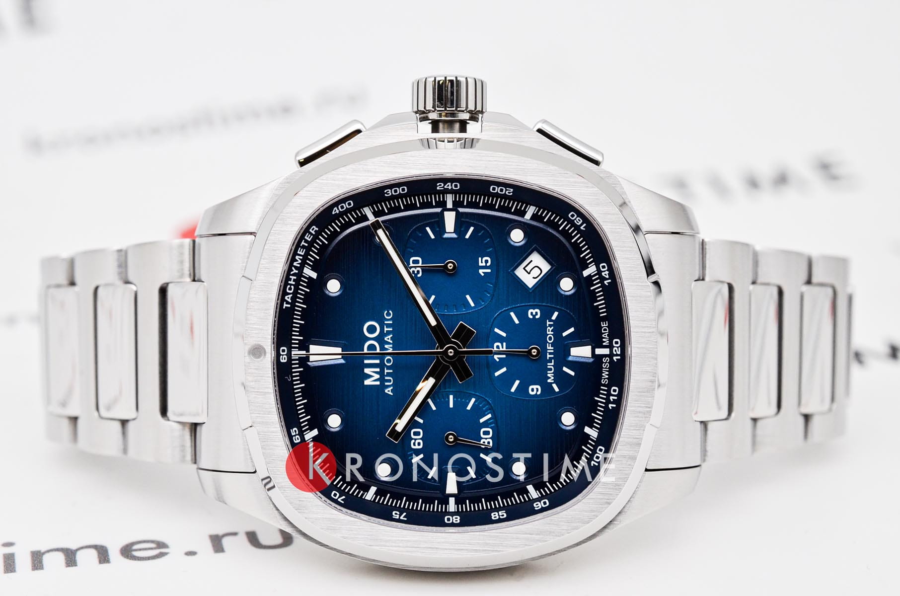 Мужские механические швейцарские часы Mido Multifort TV Chronograph M049.527.11.041.00, механический механизм с высокой точностью. Сапфировое стеклоСапфировое стеклоПрочный и надёжный материал из кристалла сапфира синтетического происхождения, характеризующийся особой твёрдостью и устойчивостью к царапинам и повреждениям. устойчивое к появлению царапин, обладающее высокой прозрачностью. Корпус часов изготовлен из нержавеющей стали.  В механизм внедрена пружина баланса Nivachron™Nivachron™Специально разработанный инновационный сплав Nivachron™ повышает устойчивость часов к воздействию магнитных полей.. Стрелки с люминесцентным покрытиемЛюминесцентное покрытиеПозволяет считывать показания времени в темноте. Производители наносят на стрелки, часовые индексы, безель или поверхность циферблата светонакопительный состав, дающий холодное свечение.. Окошко даты в положении между 4 и 6 часами. Класс водозащиты: 100 метров, позволит плавать, нырять и заниматься другими водными видами спорта. Стальной браслет на раскладной застёжкеРаскладная застёжкаТакой тип застёжки используется только на браслетах из металла. Она никогда не раскрывается полностью, происходит разделение на 2 и более частей. Раскладывающая застёжка снизит вероятность потери часов к минимуму..Часы с функциями хронографаХронографФункция позволяет измерять отрезки времени с особой точностью: часы, минуты, секунды. Верным признаком хронографа является наличие на циферблате 3 дополнительных окошек-счётчиков. и тахиметраТахиметрРазмеченная шкала, располагается на ободке или безеле часов. Тахиметр позволяет рассчитать скорость на определённом участке пути, расстояние измеряется в километрах или милях.. Поставляются с дополнительным ремешком, что обеспечивает еще большую универсальность и комфорт.