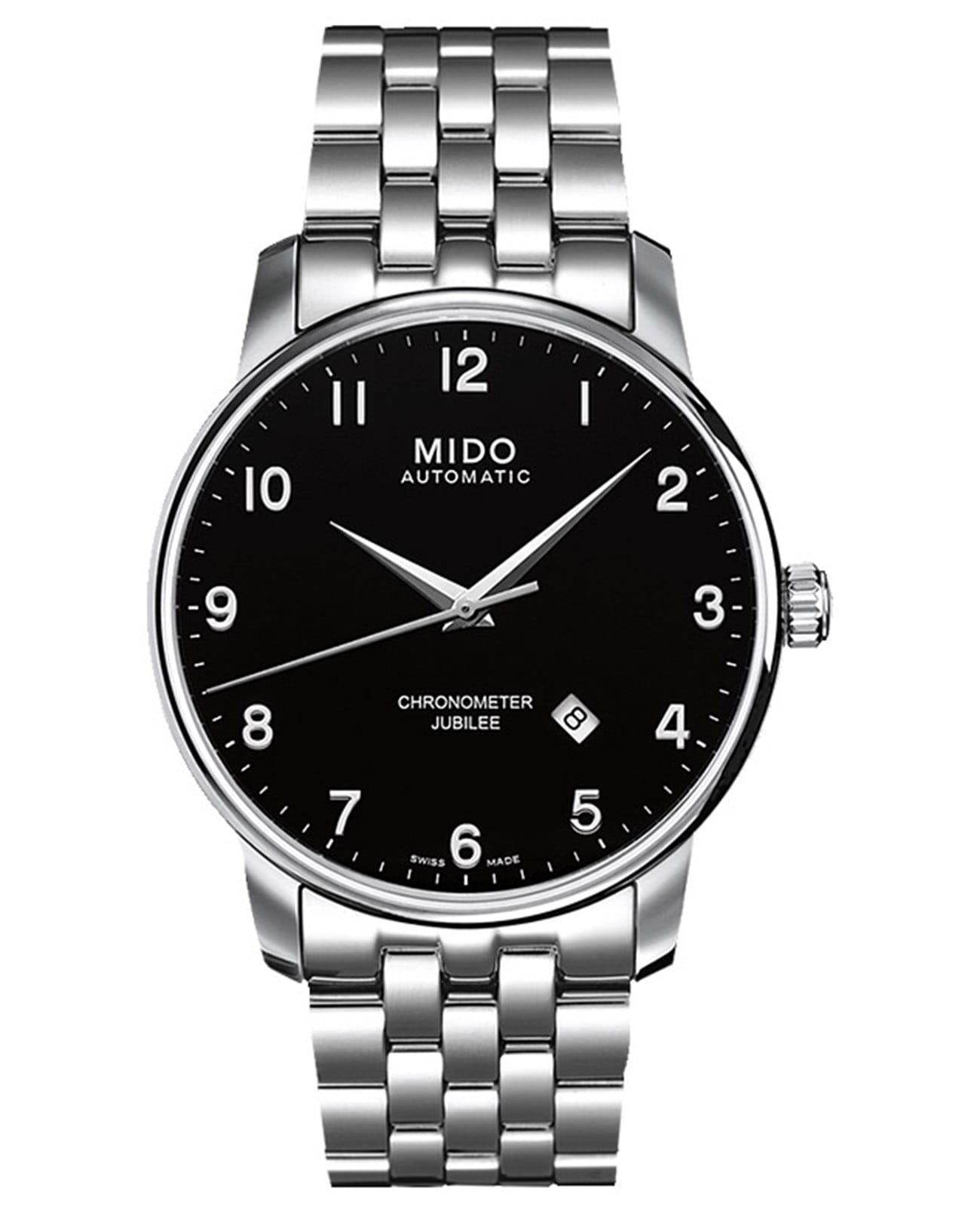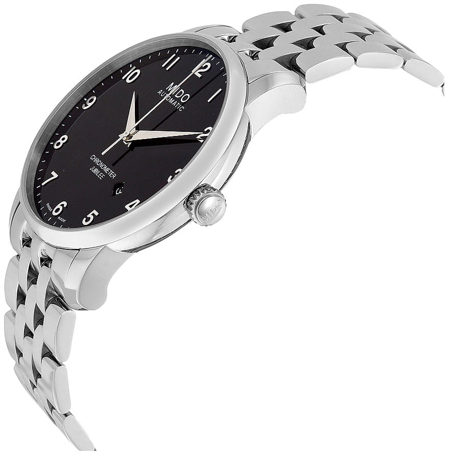 Швейцарские мужские наручные часы Mido Baroncelli M8690.4.18.1, механический механизм (автоматический калибр) с высокой точностью. Сапфировое стеклоСапфировое стеклоПрочный и надёжный материал из кристалла сапфира синтетического происхождения, характеризующийся особой твёрдостью и устойчивостью к царапинам и повреждениям. устойчивое к появлению царапин, обладающее высокой прозрачностью. Класс водозащиты: 50 метров, позволит защитить корпус от случайных брызг или капель дождя. Корпус часов изготовлен из стали. Официально сертифицированный хронометр COSCСертификат COSCОфициальный сертификат, подтверждающий то, что часы ходят с особо высокой точностью. Для получения документа часы подвергаются тестовым испытаниям, разработанным швейцарским институтом тестирования хронометров COSC. Допустимая норма для механических часов -4/+6 секунд в день, для кварцевых моделей +/- 0,07 секунд в день.. Антибликовое покрытие стекла, прозрачная задняя крышка. Запас хода на 40 часов. Противоударная система Incabloc. Застёжка бабочка с кнопкамиЗастёжка "бабочка"Такой вид застёжки дополняется предохранителями, помогающими избежать случайного раскрытия браслета. Обладают изящным исполнением.