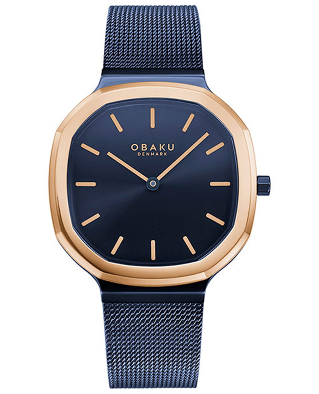 Женские датские наручные часы с сапфировым стекломСапфировое стеклоПрочный и надёжный материал из кристалла сапфира синтетического происхождения, характеризующийся особой твёрдостью и устойчивостью к царапинам и повреждениям. Obaku Oktant V253LXSLML, кварцевый механизм с высокой точностью. Сапфировое стеклоСапфировое стеклоПрочный и надёжный материал из кристалла сапфира синтетического происхождения, характеризующийся особой твёрдостью и устойчивостью к царапинам и повреждениям. устойчивое к появлению царапин, обладающее высокой прозрачностью. Класс водозащиты: 30 метров, позволит защитить корпус от случайных брызг или капель дождя. Центральные часовая и минутная стрелки. Синий циферблат. Восьмиугольный корпус выполнен из нержавеющей стали с IP-покрытиемIP-покрытиеМетод ионного напыления. Демонстрирует повышенную устойчивость к истиранию, окислению и химическим веществам. Под воздействием высокого давления и температуры около 1500°C молекулы металла надёжно соединяются с частицами корпуса часов. цвета розовое золото. Стальной браслет с синим IP-покрытиемIP-покрытиеМетод ионного напыления. Демонстрирует повышенную устойчивость к истиранию, окислению и химическим веществам. Под воздействием высокого давления и температуры около 1500°C молекулы металла надёжно соединяются с частицами корпуса часов. выполнен в технике миланского плетения, раскладная застёжкаРаскладная застёжкаТакой тип застёжки используется только на браслетах из металла. Она никогда не раскрывается полностью, происходит разделение на 2 и более частей. Раскладывающая застёжка снизит вероятность потери часов к минимуму..