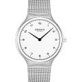 Obaku V306LXCWMC – элегантные женские часы, сочетающие современный дизайн и высокое качество исполнения. Корпус диаметром 32 мм и толщиной менее 5 мм выполнен из нержавеющей стали, придающим модели стильный и современный вид. Белый циферблат защищён сапфировым стекломСапфировое стеклоПрочный и надёжный материал из кристалла сапфира синтетического происхождения, характеризующийся особой твёрдостью и устойчивостью к царапинам и повреждениям., устойчивым к царапинам, обеспечивая долговечность и сохранение внешнего вида. Часы оснащены точным кварцевым механизмом, обеспечивающим надёжность и точность хода. Минималистичный дизайн циферблата подчёркивает скандинавскую эстетику и утончённость. Браслет из нержавеющей стали и сетчатым плетением на раскладном замкеРаскладной замокДанный вариант застежки используется только на часах с металлическим браслетом. Отличительная особенность такого крепления в том, что длина браслета становится универсальной и вы можете самостоятельно отрегулировать нужный вам размер – застежка просто двигается по браслету часов., обеспечивающей комфортное ношение и надёжную фиксацию на запястье. Водонепроницаемость до 30 метров (3 ATM) защищает модель от случайных брызг и дождя, делая её идеальным выбором для повседневного использования.