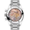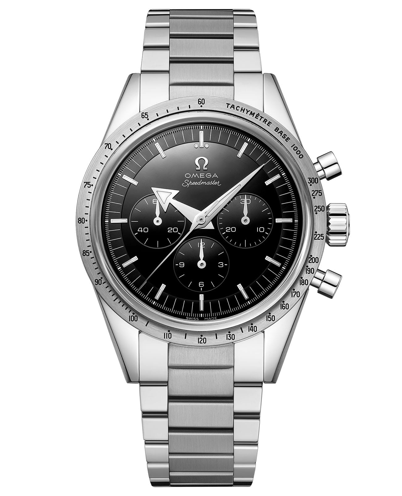 все величие часового наследия. Глубокий черный циферблат из оникса украшен культовым винтажным логотипом OMEGA с характерной овальной буквой «O», точно повторяя стилистику первых моделей. Стрелки и индексы, выполненные из того же благородного металла с PVD-покрытием, гармонично сочетаются с тремя фирменными счетчиками: малыми секундами, 30-минутным и 12-часовым счетчиками с центральной хронографной стрелкойХронографФункция позволяет измерять отрезки времени с особой точностью: часы, минуты, секунды. Верным признаком хронографа является наличие на циферблате 3 дополнительных окошек-счётчиков.. БезельБезельВнешний ободок, закрепляющий стекло. В спортивных часах так называется поворотное кольцо с делениями на циферблате, выполняет роль таймера – замеряет отрезки времени на шкале. Неподвижный безель – элемент декора. Однонаправленно вращающийся безель на дайверских часах позволяет фиксировать моменты погружения и выныривания на поверхность. с тахиметрической шкалой, покрытой черной эмалью, хранит фирменные детали - знаменитую точку над отметкой «90» (DON) и диагонально расположенную точку у «70». Задняя крышка из сапфирового стеклаСапфировое стеклоПрочный и надёжный материал из кристалла сапфира синтетического происхождения, характеризующийся особой твёрдостью и устойчивостью к царапинам и повреждениям. открывает взору медальон с морским коньком, чей глаз в честь 65-летия выполнен из синего сапфира. За этим изображением великолепно просматривается легендарный калибр 321 - символ космических достижений. Заводная головка украшена символом NAIAD, как на первых CK2915. Часы дополнены браслетом из 18-каратного золота Canopus Gold™ с фирменной системой регулировки. Юбилейная версия представлена в эксклюзивном футляре из тюльпанового дерева (аналог палисандра), дизайн которого перекликается с оригинальными кейсами Speedmaster, подчеркивая историческую ценность этой коллекционной модели.
