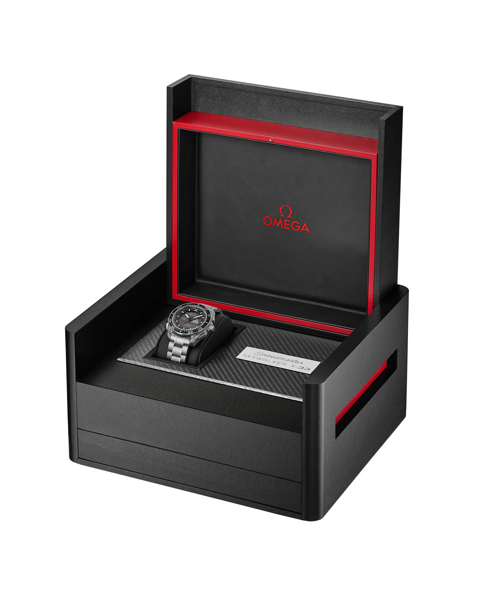 Speedmaster Skywalker X-33 - это космический хронограф нового поколения, где 45-мм титановый корпус Grade 2 встречается с черным керамическим безелемБезельВнешний ободок, закрепляющий стекло. В спортивных часах так называется поворотное кольцо с делениями на циферблате, выполняет роль таймера – замеряет отрезки времени на шкале. Неподвижный безель – элемент декора. Однонаправленно вращающийся безель на дайверских часах позволяет фиксировать моменты погружения и выныривания на поверхность., создавая идеальный симбиоз прочности и высоких технологий. Черный циферблат с ЖК-дисплеем контрастирует с браслетом из титана Grade 2 и Grade 5, демонстрируя безупречное сочетание функциональности и эргономики. В сердце часов бьется многофункциональный кварцевый механизм OMEGA калибра 5619 с хронографомХронографФункция позволяет измерять отрезки времени с особой точностью: часы, минуты, секунды. Верным признаком хронографа является наличие на циферблате 3 дополнительных окошек-счётчиков., продолжая легендарные традиции точности Speedmaster в экстремальных условиях - от космических просторов до океанских глубин. Эти часы не просто показывают время - они становятся надежным спутником в самых смелых исследовательских миссиях.
