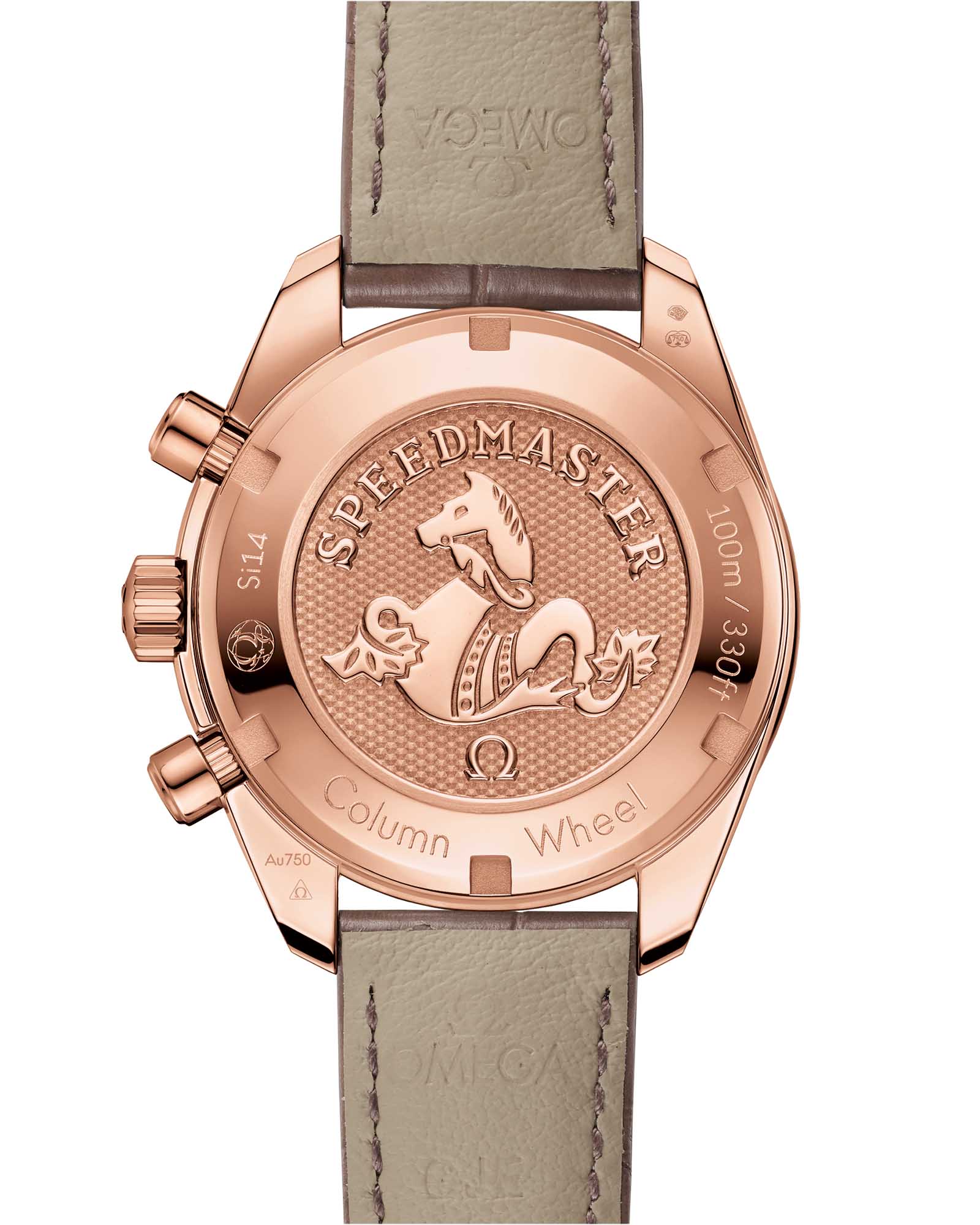 Коллекция Speedmaster 38 мм переосмысливает легендарный хронографХронографФункция позволяет измерять отрезки времени с особой точностью: часы, минуты, секунды. Верным признаком хронографа является наличие на циферблате 3 дополнительных окошек-счётчиков. OMEGA в изысканной версии с благородными материалами и утонченной эстетикой. Модель в корпусе из 18-каратного золота Sedna™18-каратное золотоОбозначение по каратной системе пробирования, оно показывает, сколько драгоценного металла содержится в изделии. 18 карат - в составе 75% чистого золота, соответствует 750 пробе.