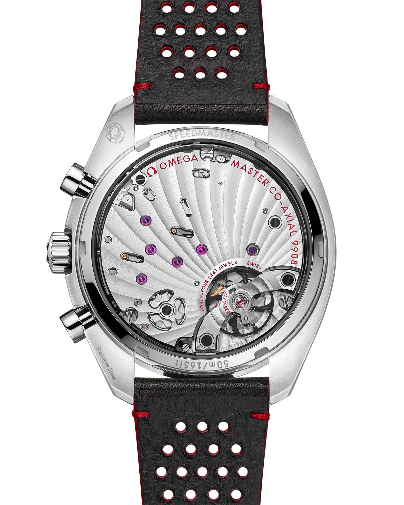 Chronoscope мастерски объединяет наследие винтажных хронографов OMEGA 1940-х с узнаваемой эстетикой Speedmaster. 43-мм корпус из нержавеющей стали с черным безелемБезельВнешний ободок, закрепляющий стекло. В спортивных часах так называется поворотное кольцо с делениями на циферблате, выполняет роль таймера – замеряет отрезки времени на шкале. Неподвижный безель – элемент декора. Однонаправленно вращающийся безель на дайверских часах позволяет фиксировать моменты погружения и выныривания на поверхность. из анодированного алюминия обрамляет серебристый циферблат, украшенный чернеными элементами и спиралевидным узором. Три исторические шкалы в форме улитки - тахиметрическаяТахиметрРазмеченная шкала, располагается на ободке или безеле часов. Тахиметр позволяет рассчитать скорость на определённом участке пути, расстояние измеряется в километрах или милях., пульсометрическая и телеметрическая - создают уникальный измерительный комплекс. Черненые стрелки в форме листьев и арабские цифры подчеркивают ретро-стиль. На позиции "9 часов" расположен счетчик малых секунд, а на "3 часах" - "60-минутный и 12-часовой счетчики" с контрастными красными стрелками. Часы дополнены черным перфорированным кожаным ремешком с эффектной красной подкладкой, а калибр OMEGA Co-Axial Master Chronometer 9908 гарантирует безупречную точность, соединяя традиции с современными технологиями.