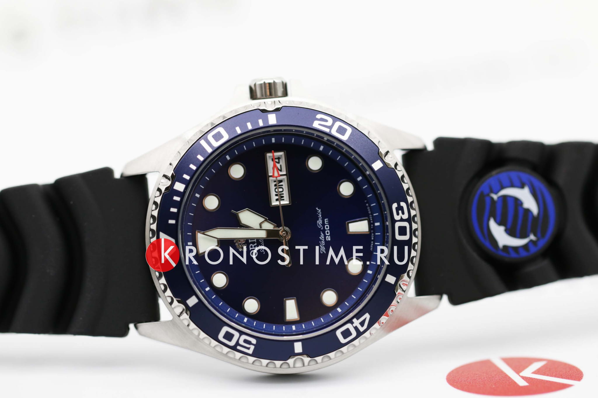 Мужские механические часы с автоподзаводом Orient Diving Sports Automatic FAA02008D (FAA02008D9). Минеральное стеклоМинеральное стеклоМинеральное стекло представляет собой искусственно выращенный минерал кварца. Такое стекло отличается особой устойчивостью к повреждениям и царапинам. Уступает по некоторым качествам сапфировому стеклу. устойчивое к появлению царапин, обладающее высокой прозрачностью. Корпус из нержавеющей стали. Вращающийся безельБезельВнешний ободок, закрепляющий стекло. В спортивных часах так называется поворотное кольцо с делениями на циферблате, выполняет роль таймера – замеряет отрезки времени на шкале. Неподвижный безель – элемент декора. Однонаправленно вращающийся безель на дайверских часах позволяет фиксировать моменты погружения и выныривания на поверхность. из нержавеющей стали с PVDPVDУльтратонкое покрытие наносится в технике вакуумного напыления, сочетает в себе нитрид титана особой прочности со слоем золота или оксида хрома. Несёт в себе декоративную или защитную функцию. покрытием. Окошко даты в положении 3 часов. Стрелки с люминесцентным покрытиемЛюминесцентное покрытиеПозволяет считывать показания времени в темноте. Производители наносят на стрелки, часовые индексы, безель или поверхность циферблата светонакопительный состав, дающий холодное свечение.. Класс водозащиты: 200 метров, позволит плавать, нырять и заниматься другими водными видами спорта. Каучуковый ремешок на стандартной застежке.