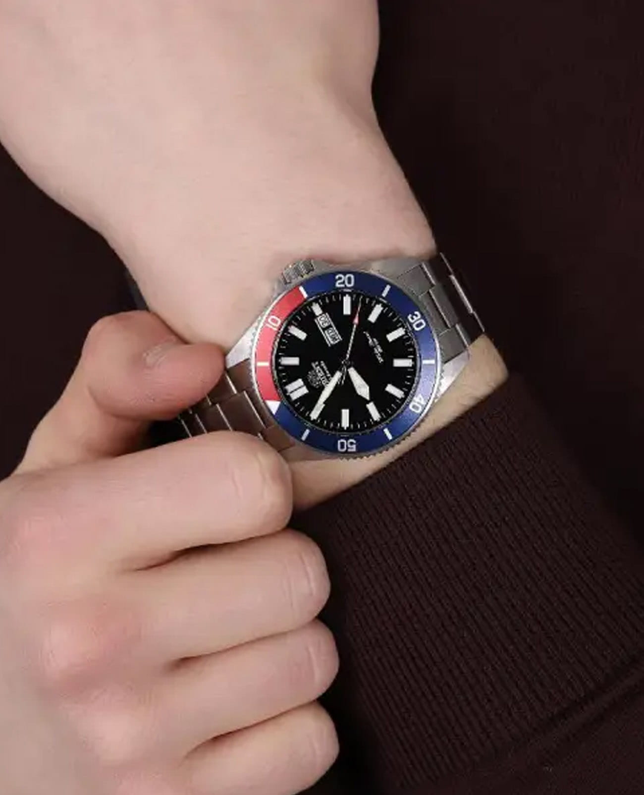 Мужские механические часы с автоподзаводом Orient Diving Sport Automatic RA-AA0912B19 (RA-AA0912B19B). Корпус и браслет часов изготовлены из нержавеющей стали. Минеральное стеклоМинеральное стеклоМинеральное стекло представляет собой искусственно выращенный минерал кварца. Такое стекло отличается особой устойчивостью к повреждениям и царапинам. Уступает по некоторым качествам сапфировому стеклу. высокой прозрачности с антибликовым покрытием. БезельБезельВнешний ободок, закрепляющий стекло. В спортивных часах так называется поворотное кольцо с делениями на циферблате, выполняет роль таймера – замеряет отрезки времени на шкале. Неподвижный безель – элемент декора. Однонаправленно вращающийся безель на дайверских часах позволяет фиксировать моменты погружения и выныривания на поверхность. с PVD-покрытиемPVDУльтратонкое покрытие наносится в технике вакуумного напыления, сочетает в себе нитрид титана особой прочности со слоем золота или оксида хрома. Несёт в себе декоративную или защитную функцию.. Окошко дня недели и даты находится в положении 3 часа. Стрелки и метки с люминесцентным покрытиемЛюминесцентное покрытиеПозволяет считывать показания времени в темноте. Производители наносят на стрелки, часовые индексы, безель или поверхность циферблата светонакопительный состав, дающий холодное свечение.. Класс водозащиты: 200 метров, позволит плавать, нырять и заниматься другими водными видами спорта. Стальной браслет на раскладной застёжкеРаскладная застёжкаТакой тип застёжки используется только на браслетах из металла. Она никогда не раскрывается полностью, происходит разделение на 2 и более частей. Раскладывающая застёжка снизит вероятность потери часов к минимуму..