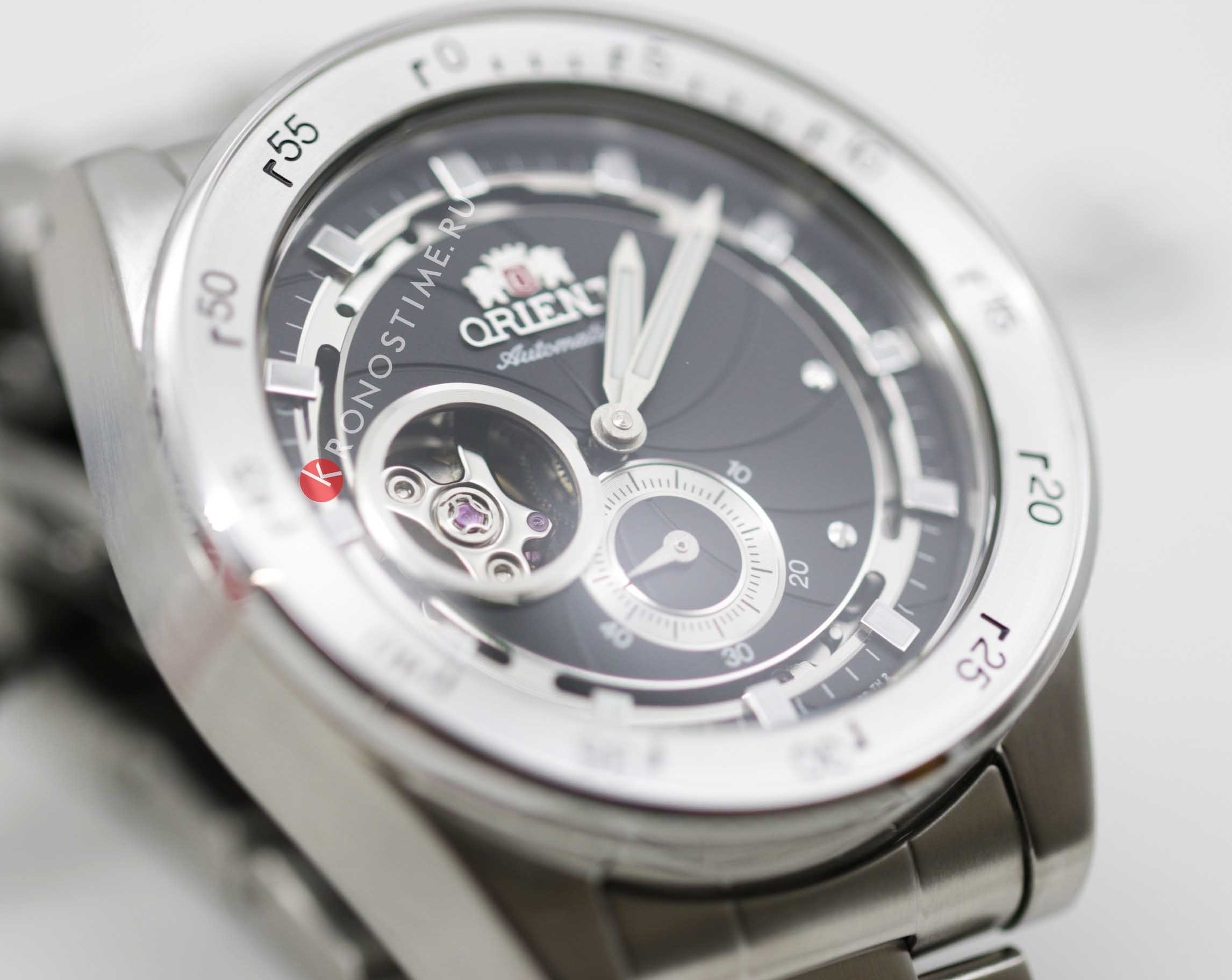 Orient RA-AR0201B — необычные и стильные часы из коллекции Revival, вдохновлённые эстетикой ретро-фотоаппаратов. Корпус диаметром 40,8 мм выполнен из нержавеющей стали с матовой отделкой. Безель стилизован под кольцо диафрагмы объектива, а заводная головка с защитой отсылает к рычагу перемотки плёнки, подчёркивая характерный винтажный образ. Чёрный циферблат с гильоше в форме лепестков оснащён открытым балансом на «9 часах» и малым секундным индикатором на «6 часах». Часовые метки и стрелки покрыты люминесцентным покрытиемЛюминесцентное покрытиеПозволяет считывать показания времени в темноте. Производители наносят на стрелки, часовые индексы, безель или поверхность циферблата светонакопительный состав, дающий холодное свечение. для надёжной читаемости в темноте. Циферблат защищён минеральным стекломМинеральное стеклоМинеральное стекло представляет собой искусственно выращенный минерал кварца. Такое стекло отличается особой устойчивостью к повреждениям и царапинам. Уступает по некоторым качествам сапфировому стеклу.. Внутри установлен японский автоматический механизм Orient F6S22 с 22 камнями, функцией ручного завода и стоп-секундой. Запас хода составляет до 40 часов. Модель комплектуется браслетом из нержавеющей стали с раскладной застёжкойРаскладная застёжкаТакой тип застёжки используется только на браслетах из металла. Она никогда не раскрывается полностью, происходит разделение на 2 и более частей. Раскладывающая застёжка снизит вероятность потери часов к минимуму., обеспечивающей надёжную посадку на запястье. Водонепроницаемость 50 метров делает часы устойчивыми к повседневным воздействиям воды.