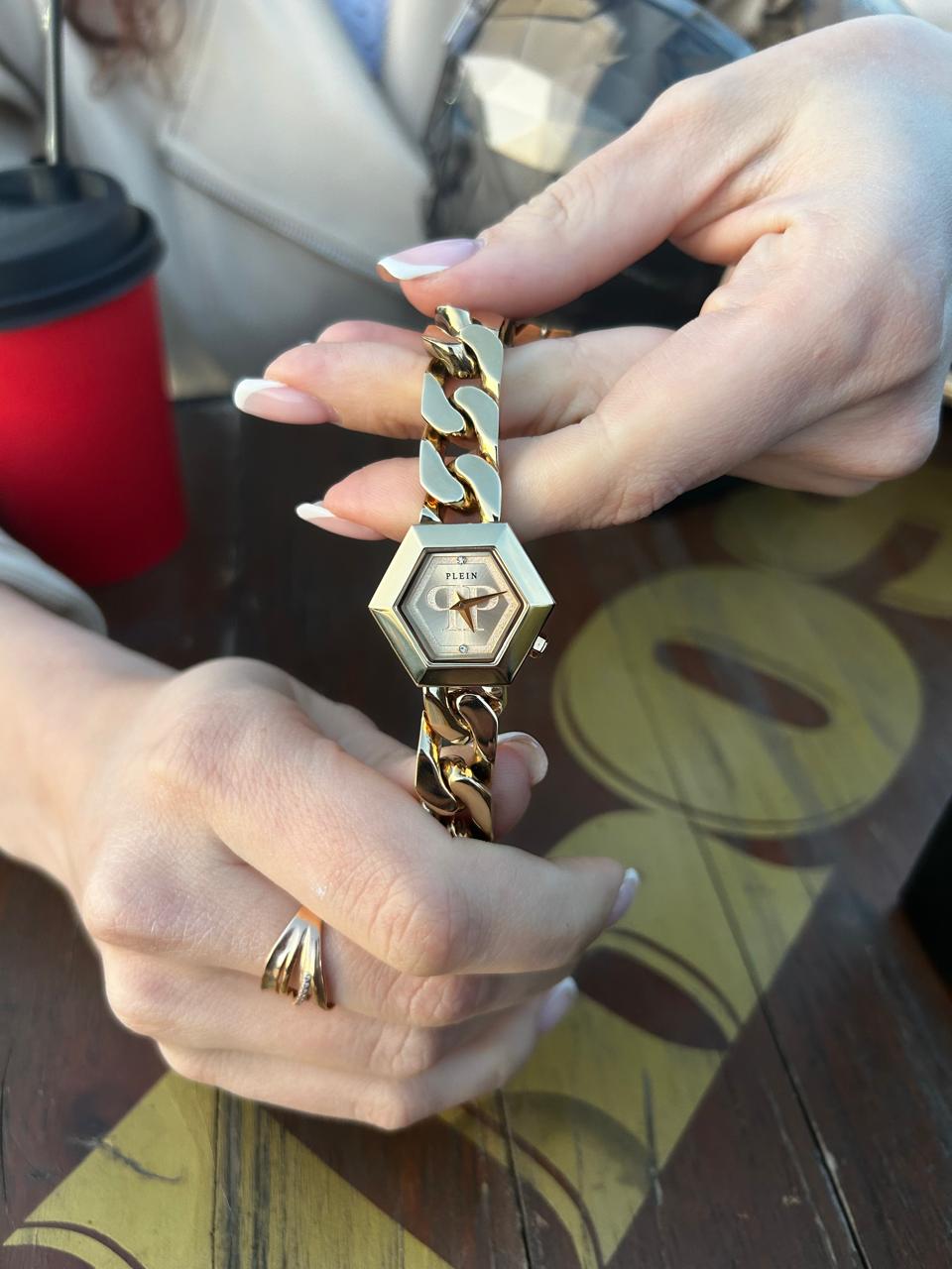 Стильные женские часы Philipp Plein The Hexagon PWWBA0323 с надежным кварцевым механизмом. Корпус и браслет часов изготовлены из нержавеющей стали с IP-покрытиемIP-покрытиеМетод ионного напыления. Демонстрирует повышенную устойчивость к истиранию, окислению и химическим веществам. Под воздействием высокого давления и температуры около 1500°C молекулы металла надёжно соединяются с частицами корпуса часов.. Минеральное стеклоМинеральное стеклоМинеральное стекло представляет собой искусственно выращенный минерал кварца. Такое стекло отличается особой устойчивостью к повреждениям и царапинам. Уступает по некоторым качествам сапфировому стеклу. устойчивое к мелким механическим повреждениям. Влагозащита: 50 метров, позволит защитить корпус от случайных брызг или капель дождя. Циферблат инкрустирован кристаллами Preciosa.