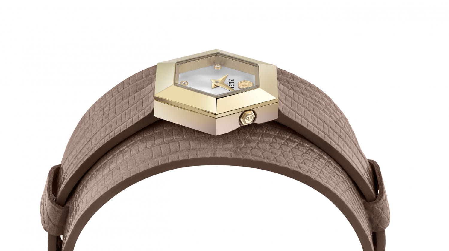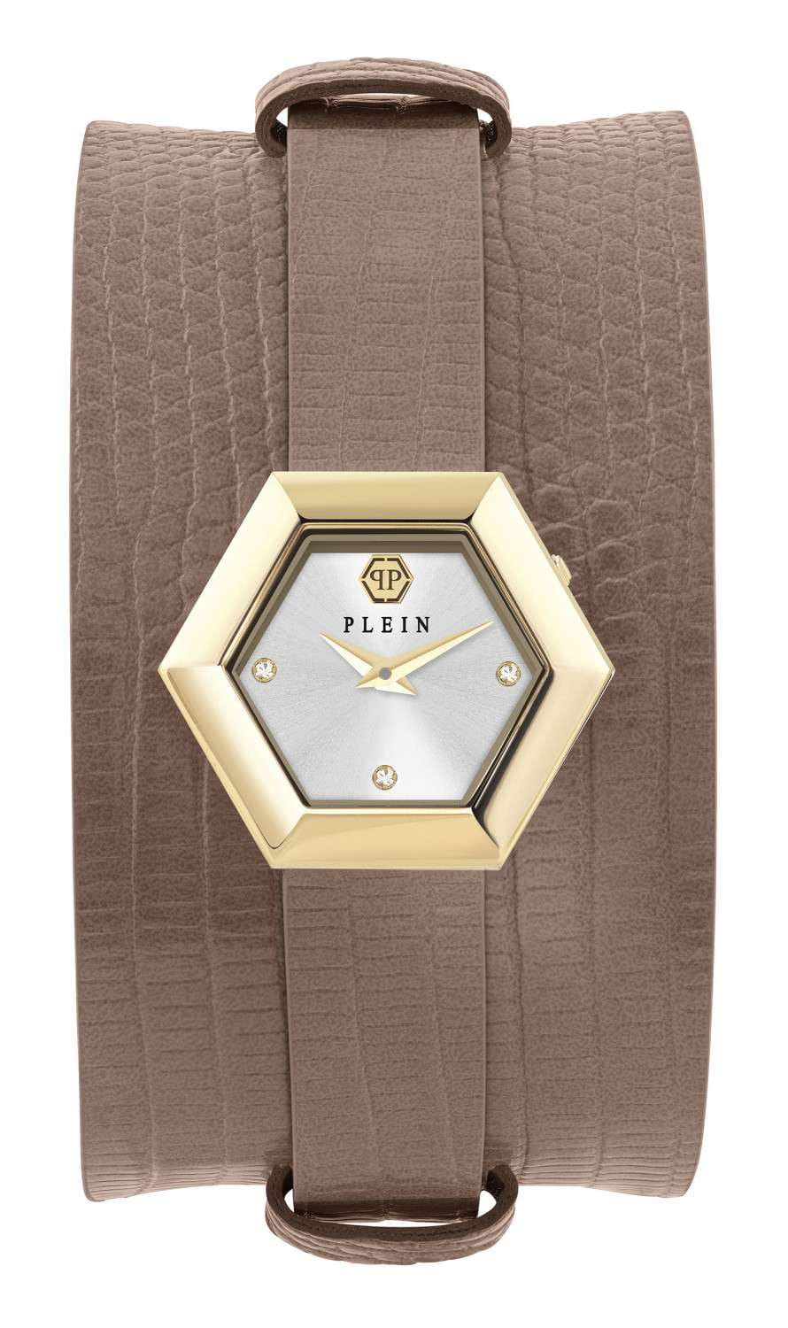 Женские кварцевые часы Philipp Plein La Jungle De Plein PW6FA0325_SET— это стильное сочетание элегантности и современного дизайна. Изящный корпус выполнен из нержавеющей стали с PVD-покрытиемPVDУльтратонкое покрытие наносится в технике вакуумного напыления, сочетает в себе нитрид титана особой прочности со слоем золота или оксида хрома. Несёт в себе декоративную или защитную функцию. золотистого цвета, диаметром 28 мм, что придаст образу женственности и романтизма. Изысканный циферблат с метками в виде точек украшены кристаллами придает модели особый блеск. Циферблат защищен минеральным стекломМинеральное стеклоМинеральное стекло представляет собой искусственно выращенный минерал кварца. Такое стекло отличается особой устойчивостью к повреждениям и царапинам. Уступает по некоторым качествам сапфировому стеклу., обеспечивающий устойчивость к царапинам. Часы оснащены надежным кварцевым механизмом. Кожаный ремешок на стандартной застёжке, гарантирует комфортное и безопасное ношение. Класс водозащиты: 50 метров позволит защитить корпус от случайных брызг или капель дождя. Phlipp Plein — отличный выбор для тех, кто ценит яркость и качество. В комплекте доп. ремешок из искусственной кожи.