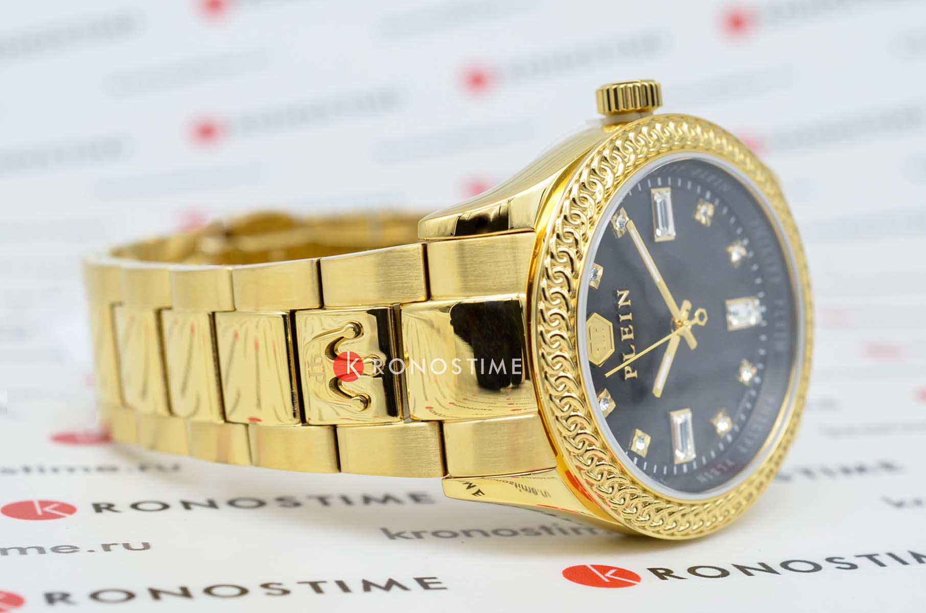 Часы Philipp Plein PWCDA0624 из коллекции Queen сочетают элегантность и функциональность. Корпус диаметром 38 мм выполнен из нержавеющей стали с PVD-покрытиемPVDУльтратонкое покрытие наносится в технике вакуумного напыления, сочетает в себе нитрид титана особой прочности со слоем золота или оксида хрома. Несёт в себе декоративную или защитную функцию., придающим изделию роскошный вид. БезельБезельВнешний ободок, закрепляющий стекло. В спортивных часах так называется поворотное кольцо с делениями на циферблате, выполняет роль таймера – замеряет отрезки времени на шкале. Неподвижный безель – элемент декора. Однонаправленно вращающийся безель на дайверских часах позволяет фиксировать моменты погружения и выныривания на поверхность. с PVD-покрытиемPVDУльтратонкое покрытие наносится в технике вакуумного напыления, сочетает в себе нитрид титана особой прочности со слоем золота или оксида хрома. Несёт в себе декоративную или защитную функцию..