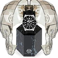 Яркие мужские часы с минеральным стекломМинеральное стеклоМинеральное стекло представляет собой искусственно выращенный минерал кварца. Такое стекло отличается особой устойчивостью к повреждениям и царапинам. Уступает по некоторым качествам сапфировому стеклу. Philipp Plein The Skull PWOAA0122, кварцевый механизм с высокой точностью. Класс водозащиты: Класс водозащиты: 50 метров, позволит защитить корпус от случайных брызг или капель дождя. Корпус часов изготовлен из стали с IP-покрытиемIP-покрытиеМетод ионного напыления. Демонстрирует повышенную устойчивость к истиранию, окислению и химическим веществам. Под воздействием высокого давления и температуры около 1500°C молекулы металла надёжно соединяются с частицами корпуса часов.. Стрелки и метки с люминесцентным покрытиемЛюминесцентное покрытиеПозволяет считывать показания времени в темноте. Производители наносят на стрелки, часовые индексы, безель или поверхность циферблата светонакопительный состав, дающий холодное свечение..