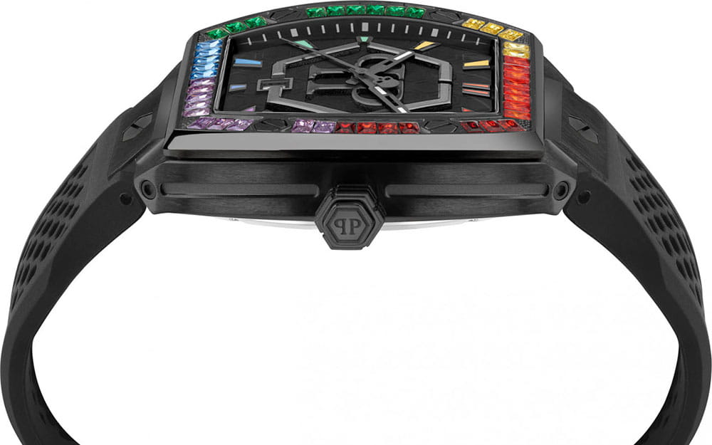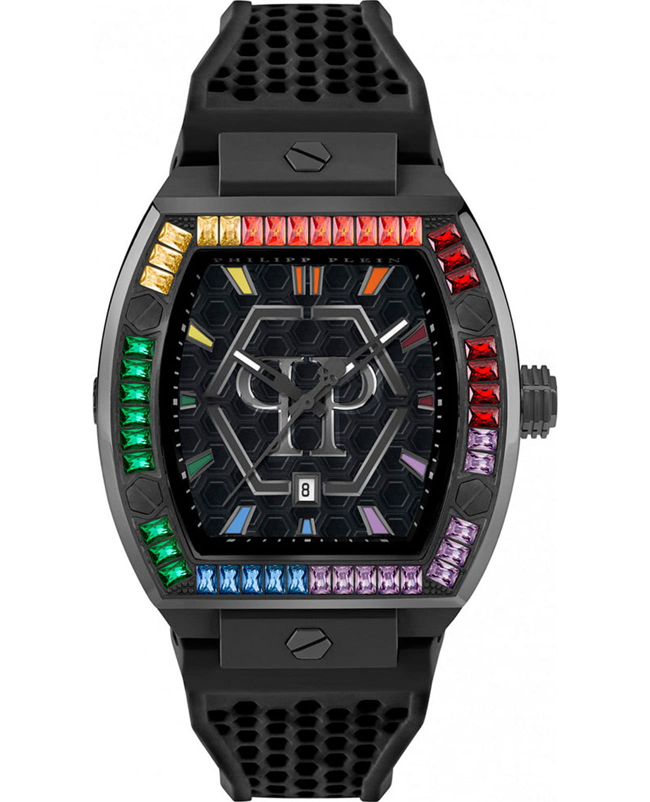 ​​Часы Philipp Plein PWPUA0324 из коллекции The Hexagon сочетают элегантность и функциональность.​​ ​​Корпус диаметром 44 мм выполнен из нержавеющей стали с IP-покрытиемIP-покрытиеМетод ионного напыления. Демонстрирует повышенную устойчивость к истиранию, окислению и химическим веществам. Под воздействием высокого давления и температуры около 1500°C молекулы металла надёжно соединяются с частицами корпуса часов. придающим изделию роскошный вид.