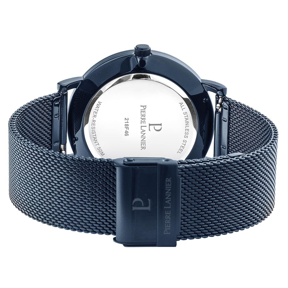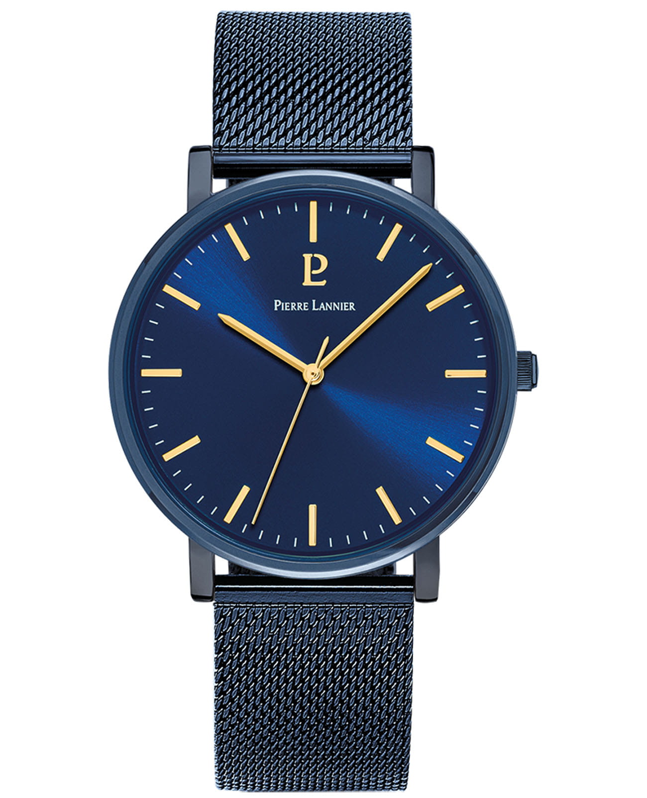 Мужские кварцевые часы Pierre Lannier Echo 388C466. Синий циферблат. Центральные часовая,минутная и секундная стрелки. Круглый корпус выполнен из полированной нержавеющей стали. Синий стальной браслет выполнен в технике миланского плетения, на раскладной застёжкеРаскладная застёжкаТакой тип застёжки используется только на браслетах из металла. Она никогда не раскрывается полностью, происходит разделение на 2 и более частей. Раскладывающая застёжка снизит вероятность потери часов к минимуму.. Минеральное стеклоМинеральное стеклоМинеральное стекло представляет собой искусственно выращенный минерал кварца. Такое стекло отличается особой устойчивостью к повреждениям и царапинам. Уступает по некоторым качествам сапфировому стеклу., устойчивое к мелким механическим повреждениям. Диаметр корпуса составляет 40,5 мм, толщина 7,9 мм. Водостойкость:50 метров, позволит защитить корпус от случайных брызг или капель дождя. Синий кожаный ремешок в комплекте.