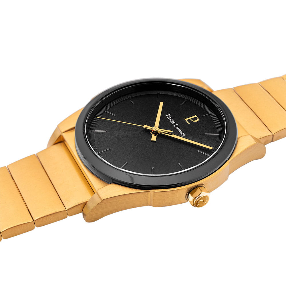 Мужские кварцевые часы Pierre Lannier Candide 215L032. Минеральное стеклоМинеральное стеклоМинеральное стекло представляет собой искусственно выращенный минерал кварца. Такое стекло отличается особой устойчивостью к повреждениям и царапинам. Уступает по некоторым качествам сапфировому стеклу. устойчивое к мелким механическим повреждениям. Центральные часовая, минутная и секундная стрелки. Корпус выполнен из нержавеющей стали с IP-покрытиемIP-покрытиеМетод ионного напыления. Демонстрирует повышенную устойчивость к истиранию, окислению и химическим веществам. Под воздействием высокого давления и температуры около 1500°C молекулы металла надёжно соединяются с частицами корпуса часов.. Неподвижный безельБезельВнешний ободок, закрепляющий стекло. В спортивных часах так называется поворотное кольцо с делениями на циферблате, выполняет роль таймера – замеряет отрезки времени на шкале. Неподвижный безель – элемент декора. Однонаправленно вращающийся безель на дайверских часах позволяет фиксировать моменты погружения и выныривания на поверхность. из нержавеющей стали с IP-покрытиемIP-покрытиеМетод ионного напыления. Демонстрирует повышенную устойчивость к истиранию, окислению и химическим веществам. Под воздействием высокого давления и температуры около 1500°C молекулы металла надёжно соединяются с частицами корпуса часов.. Водостойкость: 30 метров, позволит защитить корпус от случайных брызг или капель дождя. Стальной браслет с IP-покрытиемIP-покрытиеМетод ионного напыления. Демонстрирует повышенную устойчивость к истиранию, окислению и химическим веществам. Под воздействием высокого давления и температуры около 1500°C молекулы металла надёжно соединяются с частицами корпуса часов. и с раскладной застёжкойРаскладная застёжкаТакой тип застёжки используется только на браслетах из металла. Она никогда не раскрывается полностью, происходит разделение на 2 и более частей. Раскладывающая застёжка снизит вероятность потери часов к минимуму..