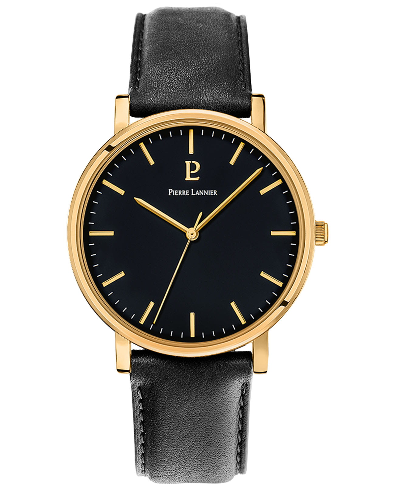 Мужские кварцевые часы Pierre Lannier Echo 218F033. Черный циферблат. Центральные часовая,минутная и секундная стрелки. Круглый корпус выполнен из полированной нержавеющей стали. Черный кожаный ремешок на стандартной застёжке. Минеральное стеклоМинеральное стеклоМинеральное стекло представляет собой искусственно выращенный минерал кварца. Такое стекло отличается особой устойчивостью к повреждениям и царапинам. Уступает по некоторым качествам сапфировому стеклу., устойчивое к мелким механическим повреждениям. Диаметр корпуса составляет 40,5 мм, толщина 7,9 мм. Водостойкость:50 метров, позволит защитить корпус от случайных брызг или капель дождя.