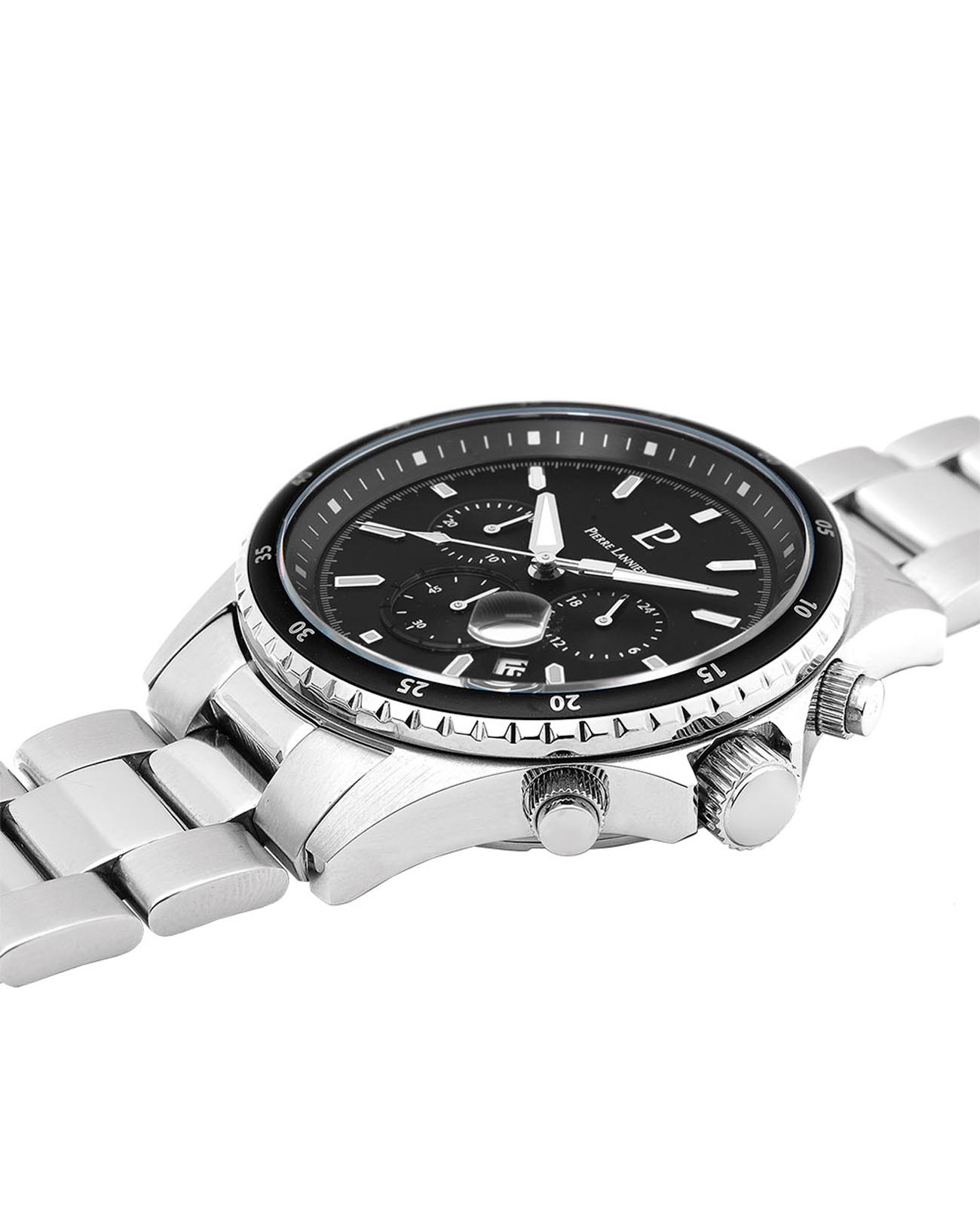 Мужские кварцевые часы Pierre Lannier Cronos 226G131. Часы-хронографХронографФункция позволяет измерять отрезки времени с особой точностью: часы, минуты, секунды. Верным признаком хронографа является наличие на циферблате 3 дополнительных окошек-счётчиков. с секундомеромСекундомерСекундоме́р — прибор, способный измерять интервалы времени с точностью до долей секунды.. Минеральное стеклоМинеральное стеклоМинеральное стекло представляет собой искусственно выращенный минерал кварца. Такое стекло отличается особой устойчивостью к повреждениям и царапинам. Уступает по некоторым качествам сапфировому стеклу. устойчивое к мелким механическим повреждениям. Корпус из нержавеющей стали. БезельБезельВнешний ободок, закрепляющий стекло. В спортивных часах так называется поворотное кольцо с делениями на циферблате, выполняет роль таймера – замеряет отрезки времени на шкале. Неподвижный безель – элемент декора. Однонаправленно вращающийся безель на дайверских часах позволяет фиксировать моменты погружения и выныривания на поверхность. из нержавющей стали с IP-покрытиемIP-покрытиеМетод ионного напыления. Демонстрирует повышенную устойчивость к истиранию, окислению и химическим веществам. Под воздействием высокого давления и температуры около 1500°C молекулы металла надёжно соединяются с частицами корпуса часов.. Центральные часовая и минутная стрелки, секундная стрелка вынесена на малый циферблат. Окошко даты между 4 и 5 часам. Стрелки с люминесцентным покрытиемЛюминесцентное покрытиеПозволяет считывать показания времени в темноте. Производители наносят на стрелки, часовые индексы, безель или поверхность циферблата светонакопительный состав, дающий холодное свечение.. Водостойкость: 100 метров, позволит плавать, нырять и заниматься другими водными видами спорта. Стальной браслет с раскладной застёжкойРаскладная застёжкаТакой тип застёжки используется только на браслетах из металла. Она никогда не раскрывается полностью, происходит разделение на 2 и более частей. Раскладывающая застёжка снизит вероятность потери часов к минимуму..
