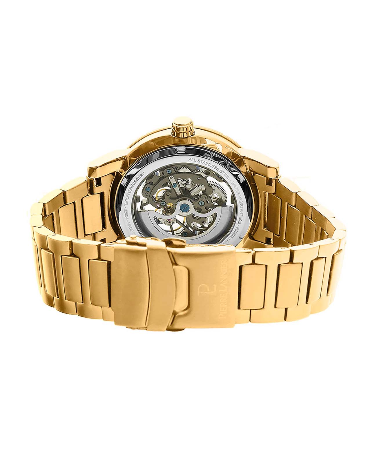 Мужские механические часы с автоподзаводом Pierre Lannier Automatic 325C032. Минеральное стеклоМинеральное стеклоМинеральное стекло представляет собой искусственно выращенный минерал кварца. Такое стекло отличается особой устойчивостью к повреждениям и царапинам. Уступает по некоторым качествам сапфировому стеклу. устойчивое к мелким механическим повреждениям. Корпус и браслет выполнены из нержавеющей стали с IP-покрытиемIP-покрытиеМетод ионного напыления. Демонстрирует повышенную устойчивость к истиранию, окислению и химическим веществам. Под воздействием высокого давления и температуры около 1500°C молекулы металла надёжно соединяются с частицами корпуса часов.. Центральные часовая, минутная и секундная стрелки. Стрелки с люминесцентным покрытиемЛюминесцентное покрытиеПозволяет считывать показания времени в темноте. Производители наносят на стрелки, часовые индексы, безель или поверхность циферблата светонакопительный состав, дающий холодное свечение.. Черный скелетонизированный циферблат. Прозрачная задняя крышка. Водостойкость: 50 метров, позволит защитить корпус от случайных брызг или капель дождя. Стальной браслет на раскладной застёжкеРаскладная застёжкаТакой тип застёжки используется только на браслетах из металла. Она никогда не раскрывается полностью, происходит разделение на 2 и более частей. Раскладывающая застёжка снизит вероятность потери часов к минимуму..