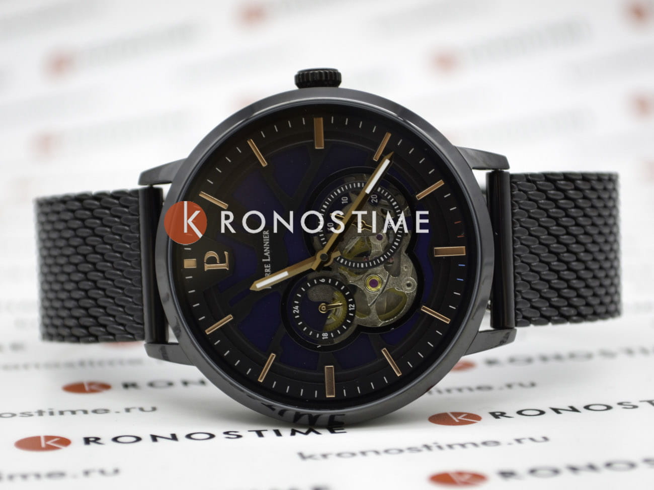 Мужские механические часы с автоподзаводом Pierre Lannier Trio 335B469. Минеральное стеклоМинеральное стеклоМинеральное стекло представляет собой искусственно выращенный минерал кварца. Такое стекло отличается особой устойчивостью к повреждениям и царапинам. Уступает по некоторым качествам сапфировому стеклу. устойчивое к мелким механическим повреждениям. 12/24х часовой формат времени. Центральные часовая и минутная стрелки, секундная стрелка вынесена на малый циферблат. Корпус выполнен из нержавеющей стали с IP-покрытиемIP-покрытиеМетод ионного напыления. Демонстрирует повышенную устойчивость к истиранию, окислению и химическим веществам. Под воздействием высокого давления и температуры около 1500°C молекулы металла надёжно соединяются с частицами корпуса часов.. Водостойкость: 50 метров, позволит защитить корпус от случайных брызг или капель дождя. Стальной браслет миланского плетения с раскладной застёжкойРаскладная застёжкаТакой тип застёжки используется только на браслетах из металла. Она никогда не раскрывается полностью, происходит разделение на 2 и более частей. Раскладывающая застёжка снизит вероятность потери часов к минимуму.. Синий циферблат с открытым балансом хода. Стрелки с люминесцентным покрытиемЛюминесцентное покрытиеПозволяет считывать показания времени в темноте. Производители наносят на стрелки, часовые индексы, безель или поверхность циферблата светонакопительный состав, дающий холодное свечение..