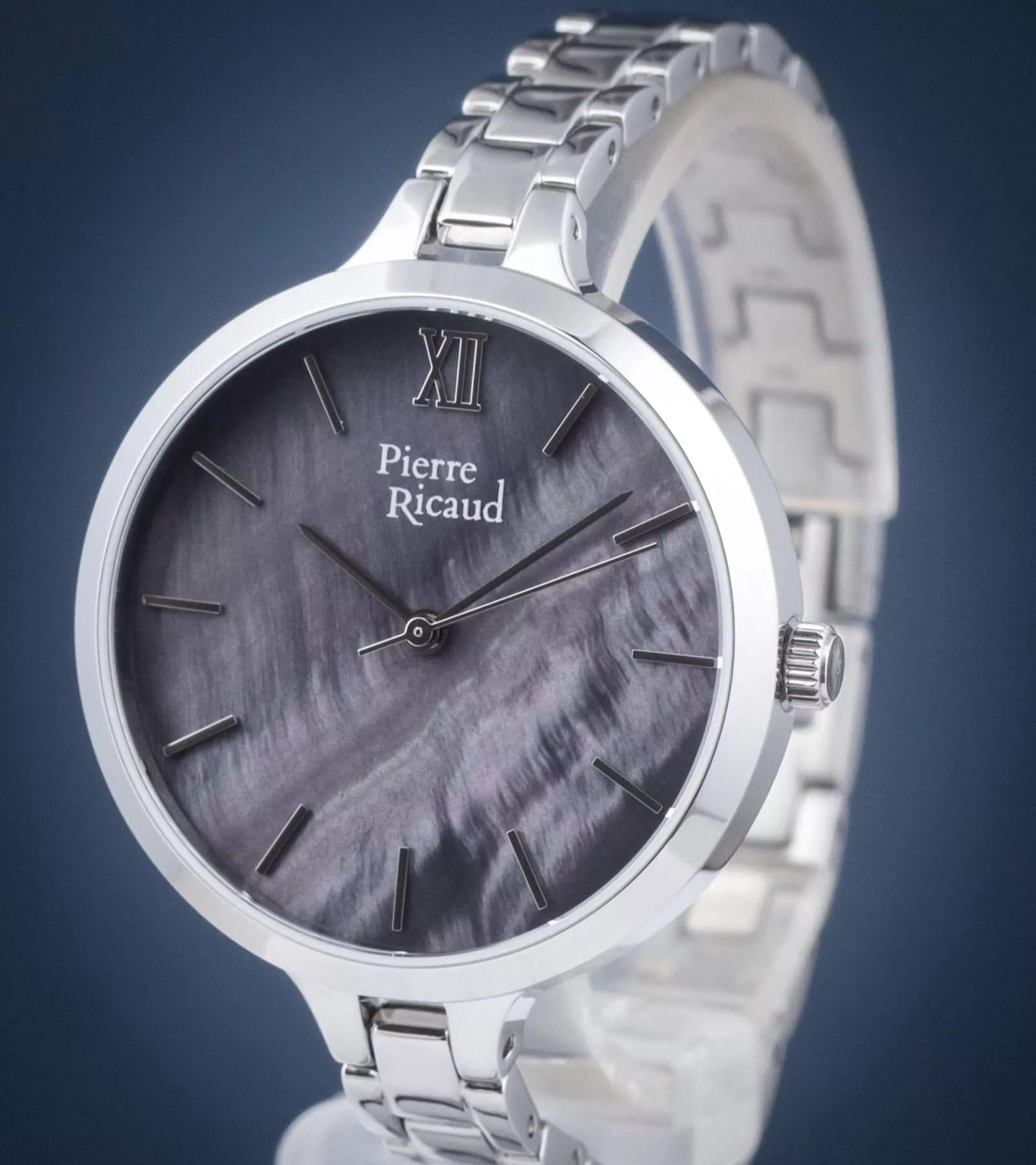 Женские кварцевые наручные часы с минеральным стекломМинеральное стеклоМинеральное стекло представляет собой искусственно выращенный минерал кварца. Такое стекло отличается особой устойчивостью к повреждениям и царапинам. Уступает по некоторым качествам сапфировому стеклу. Pierre Ricaud P22055.516ZQ, кварцевый механизм с высокой точностью. Класс водозащиты: 30 метров, позволит защитить корпус от случайных брызг или капель дождя. Корпус часов изготовлен из стали.  Стальной браслет на ювелирной застёжке.