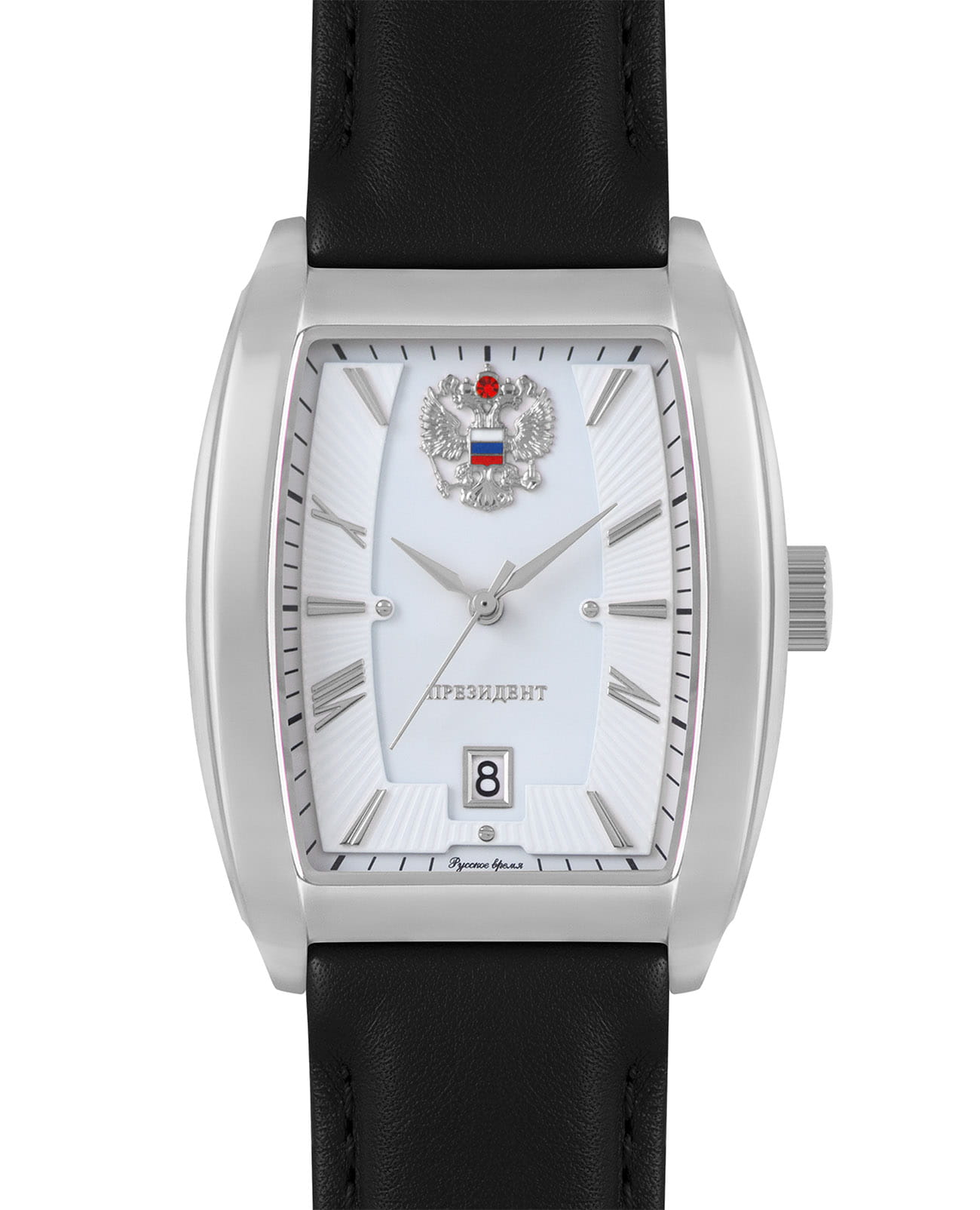 Мужские классические часы Русское Время из коллекции Президент — это воплощение точности и стиля, созданные в России. Модель оснащена японским кварцевым механизмом Miyota 2315, обеспечивающим надёжность и стабильность хода. Корпус выполненный из нержавеющей стали, защищён минеральным стекломМинеральное стеклоМинеральное стекло представляет собой искусственно выращенный минерал кварца. Такое стекло отличается особой устойчивостью к повреждениям и царапинам. Уступает по некоторым качествам сапфировому стеклу., устойчивым к мелким повреждениям. Часы имеют окошко даты, расположенное в положении 3 часов, что делает его удобным для восприятия. Ремешок чёнрного цвета изготовлен из натуральной кожи и дополнен классической Раскладная застёжкаРаскладная застёжкаТакой тип застёжки используется только на браслетах из металла. Она никогда не раскрывается полностью, происходит разделение на 2 и более частей. Раскладывающая застёжка снизит вероятность потери часов к минимуму., обеспечивающей комфорт и надёжную фиксацию на запястье. Ширина ремешка составляет 22 мм, а его размеры — 37x49 мм, толщина — 11 мм. Часы водонепроницаемы до 30 метров (), что позволяет использовать их в повседневных условиях — при мытье рук или под лёгким дождём. Эти часы станут универсальным аксессуаром для тех, кто ценит сочетание точности, качества и элегантного дизайна — идеальный выбор для повседневной носки и делового образа.
