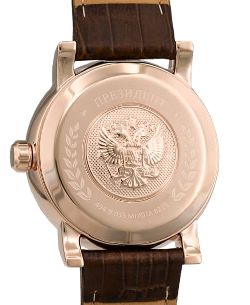 Часы «Президент» модели 4949035 — это мужские механические наручные часы с автоподзаводом, сочетающие элегантный дизайн и надёжность. Механизм: японский механизм Miyota 8215 с автоподзаводом, обеспечивающий точность и долговечность. Функции: часы, минуты, секунды, дата. Корпус: из нержавеющей стали с PVD-покрытиемPVDУльтратонкое покрытие наносится в технике вакуумного напыления, сочетает в себе нитрид титана особой прочности со слоем золота или оксида хрома. Несёт в себе декоративную или защитную функцию., диаметром 43 мм и толщиной 12,6 мм. Стекло: минеральноеМинеральное стеклоМинеральное стекло представляет собой искусственно выращенный минерал кварца. Такое стекло отличается особой устойчивостью к повреждениям и царапинам. Уступает по некоторым качествам сапфировому стеклу., устойчивое к царапинам. Водонепроницаемость: 3 ATM (30 метров), защищает от случайных брызг и дождя. Ремешок: кожаный, шириной 22 мм, обеспечивающий комфорт при ношении. Эти часы — выбор для тех, кто ценит сочетание стиля и функциональности.