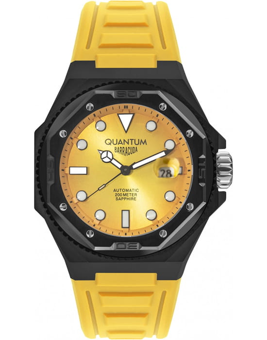 Мужские механические часы Quantum BAR1091.614. Сапфировое стеклоСапфировое стеклоПрочный и надёжный материал из кристалла сапфира синтетического происхождения, характеризующийся особой твёрдостью и устойчивостью к царапинам и повреждениям. устойчивое к появлению царапин, обладающее высокой прозрачностью. Класс водозащиты: 200 метров, позволит плавать, нырять и заниматься другими водными видами спорта. Корпус часов изготовлен из нержавеющей стали с PVD-покрытиемPVDУльтратонкое покрытие наносится в технике вакуумного напыления, сочетает в себе нитрид титана особой прочности со слоем золота или оксида хрома. Несёт в себе декоративную или защитную функцию.. Каучуковый ремешок. Окошко даты находится в положении 3 часов. Стрелки и метки с люминесцентным покрытиемЛюминесцентное покрытиеПозволяет считывать показания времени в темноте. Производители наносят на стрелки, часовые индексы, безель или поверхность циферблата светонакопительный состав, дающий холодное свечение..