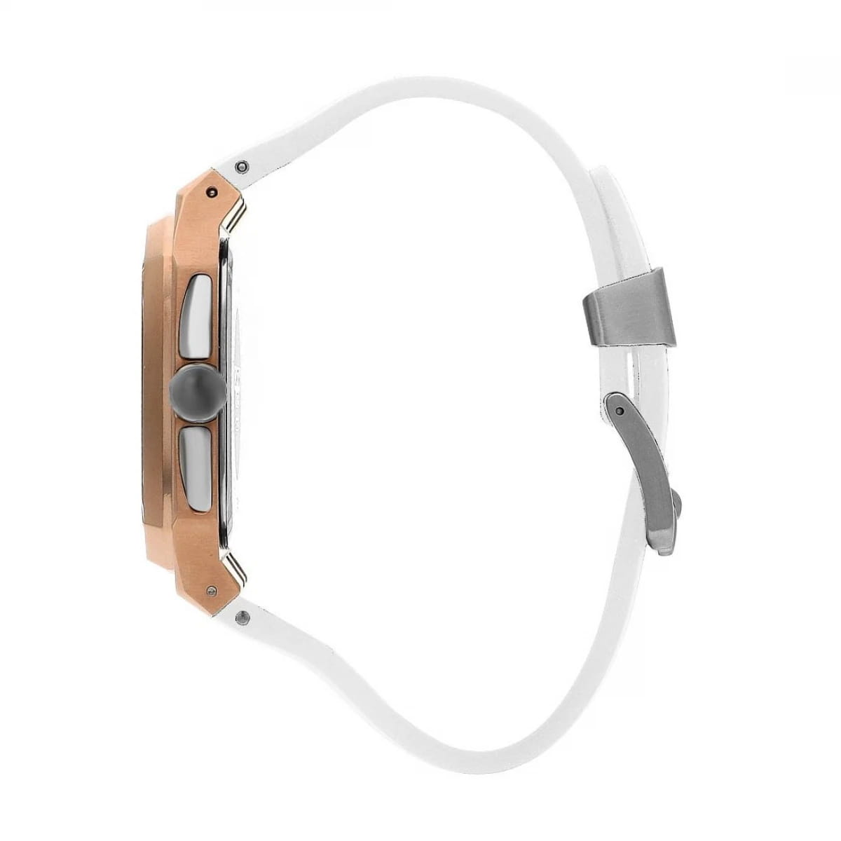 Мужские кварцевые часы Quantum из коллекции Hunter — яркий пример современного дизайна и продуманной функциональности. Прямоугольный корпус из нержавеющей стали с PVD-покрытиемPVDУльтратонкое покрытие наносится в технике вакуумного напыления, сочетает в себе нитрид титана особой прочности со слоем золота или оксида хрома. Несёт в себе декоративную или защитную функцию. цвета розового золота создаёт выразительный акцент, гармонично сочетающийся с лаконичным белым циферблатом. Часы оснащены хронографомХронографФункция позволяет измерять отрезки времени с особой точностью: часы, минуты, секунды. Верным признаком хронографа является наличие на циферблате 3 дополнительных окошек-счётчиков. и окошком даты, а минеральное стеклоМинеральное стеклоМинеральное стекло представляет собой искусственно выращенный минерал кварца. Такое стекло отличается особой устойчивостью к повреждениям и царапинам. Уступает по некоторым качествам сапфировому стеклу. с антибликовым покрытием обеспечивает чёткость восприятия в любых условиях. Стрелки с люминесцентным покрытиемЛюминесцентное покрытиеПозволяет считывать показания времени в темноте. Производители наносят на стрелки, часовые индексы, безель или поверхность циферблата светонакопительный состав, дающий холодное свечение.. Надёжный кварцевый механизм Seiko гарантирует точность хода, а водонепроницаемость 100 м делает модель подходящей для повседневного ношения и активного отдыха. Белый силиконовый ремешок на стандартной застёжке подчёркивает спортивный характер аксессуара, оставаясь при этом универсальным и удобным. Идеальный выбор для тех, кто ценит турецкий дизайн и современный стиль.