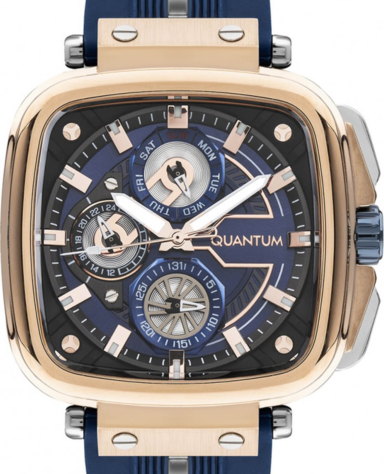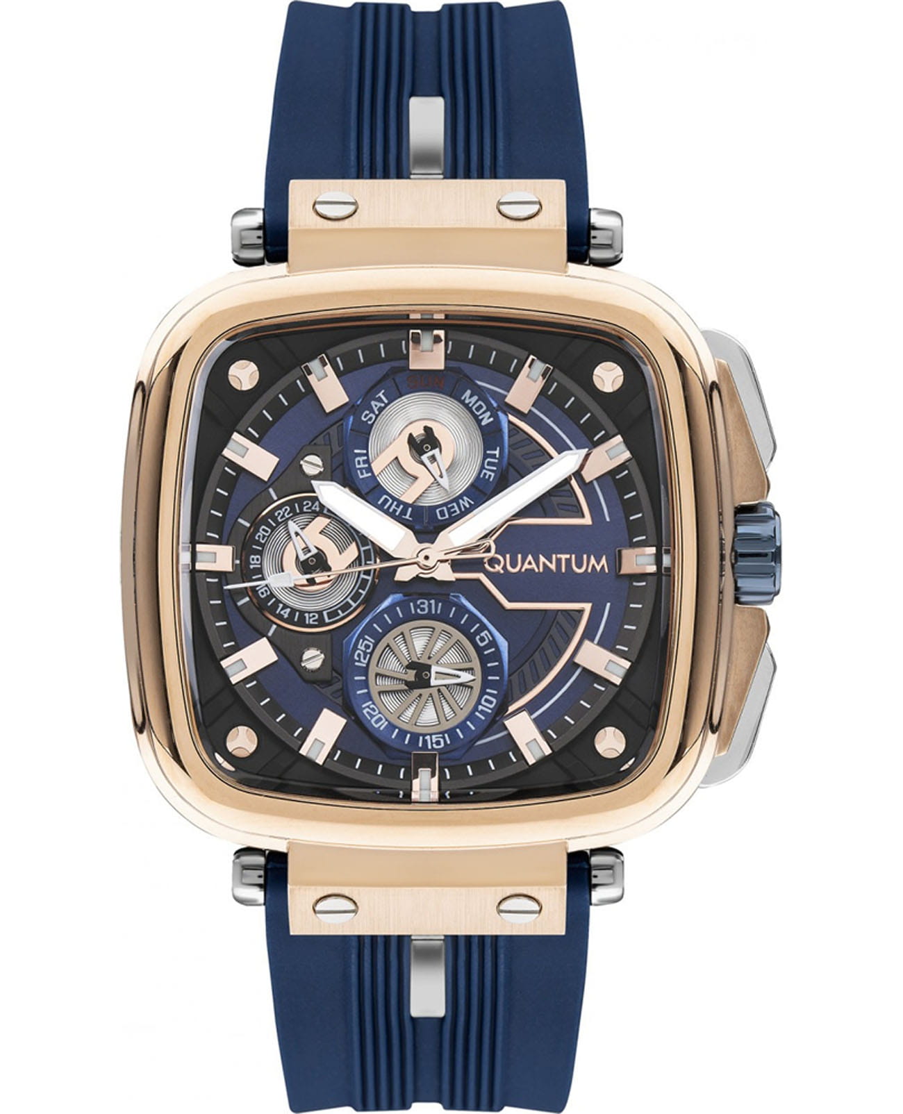 Мужские наручные часы Quantum PWG1014.499, кварцевый механизм с высокой точностью. Минеральное стеклоМинеральное стеклоМинеральное стекло представляет собой искусственно выращенный минерал кварца. Такое стекло отличается особой устойчивостью к повреждениям и царапинам. Уступает по некоторым качествам сапфировому стеклу. устойчивое к появлению царапин, обладающее высокой прозрачностью. Класс водозащиты: 100 метров, позволит плавать, нырять и заниматься другими водными видами спорта. Корпус часов изготовлен из нержавеющей стали. Стрелки и метки с люминесцентным покрытиемЛюминесцентное покрытиеПозволяет считывать показания времени в темноте. Производители наносят на стрелки, часовые индексы, безель или поверхность циферблата светонакопительный состав, дающий холодное свечение.. Браслет из каучука на стандартной застежке. БезельБезельВнешний ободок, закрепляющий стекло. В спортивных часах так называется поворотное кольцо с делениями на циферблате, выполняет роль таймера – замеряет отрезки времени на шкале. Неподвижный безель – элемент декора. Однонаправленно вращающийся безель на дайверских часах позволяет фиксировать моменты погружения и выныривания на поверхность. с PVD-покрытиемPVDУльтратонкое покрытие наносится в технике вакуумного напыления, сочетает в себе нитрид титана особой прочности со слоем золота или оксида хрома. Несёт в себе декоративную или защитную функцию..