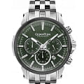 Мужские часы c хронографомХронографФункция позволяет измерять отрезки времени с особой точностью: часы, минуты, секунды. Верным признаком хронографа является наличие на циферблате 3 дополнительных окошек-счётчиков. Quantum PWG882.370, кварцевый механизм с высокой точностью. Минеральное стеклоМинеральное стеклоМинеральное стекло представляет собой искусственно выращенный минерал кварца. Такое стекло отличается особой устойчивостью к повреждениям и царапинам. Уступает по некоторым качествам сапфировому стеклу. устойчивое к появлению царапин, обладающее высокой прозрачностью. Класс водозащиты: 50 метров, позволит защитить корпус от случайных брызг или капель дождя. Корпус и браслет часов изготовлены из стали . Стрелки и метки с люминесцентным покрытиемЛюминесцентное покрытиеПозволяет считывать показания времени в темноте. Производители наносят на стрелки, часовые индексы, безель или поверхность циферблата светонакопительный состав, дающий холодное свечение..Стальной браслет на раскладной застёжкеРаскладная застёжкаТакой тип застёжки используется только на браслетах из металла. Она никогда не раскрывается полностью, происходит разделение на 2 и более частей. Раскладывающая застёжка снизит вероятность потери часов к минимуму.. Окошко даты находится в положении между 4 и 5 часов. ТахиметрТахиметрРазмеченная шкала, располагается на ободке или безеле часов. Тахиметр позволяет рассчитать скорость на определённом участке пути, расстояние измеряется в километрах или милях.. БезельБезельВнешний ободок, закрепляющий стекло. В спортивных часах так называется поворотное кольцо с делениями на циферблате, выполняет роль таймера – замеряет отрезки времени на шкале. Неподвижный безель – элемент декора. Однонаправленно вращающийся безель на дайверских часах позволяет фиксировать моменты погружения и выныривания на поверхность. с IP-покрытиемIP-покрытиеМетод ионного напыления. Демонстрирует повышенную устойчивость к истиранию, окислению и химическим веществам. Под воздействием высокого давления и температуры около 1500°C молекулы металла надёжно соединяются с частицами корпуса часов..