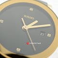 Наручные часы представляют собой воплощение классики и лаконичного дизайна, это идеальный вариант для поддержания солидного имиджа. Они выполнены из нержавеющей стали и высокотехнологичной керамикиВысокотехнологичная керамикаИнновационный запатентованный Rado материал с гладкой или матовой поверхностью. Керамика за счёт кристаллической структуры обладает повышенной устойчивостью от возникновения царапин. Материал способен принимать температуру тела человека, обеспечивая невероятный комфорт при ношении., чёрные вставки привлекательно смотрятся. Минималистичный циферблат инкрустирован 4 бриллиантами в 0,009 карат. Кварцевый калибр ETA 956.112 с высокой точностью хода. Золотистое PVD-покрытиеPVDУльтратонкое покрытие наносится в технике вакуумного напыления, сочетает в себе нитрид титана особой прочности со слоем золота или оксида хрома. Несёт в себе декоративную или защитную функцию.. Сапфировое стекло противостоит образованию царапин на поверхности. Диаметр корпуса: 28 мм.