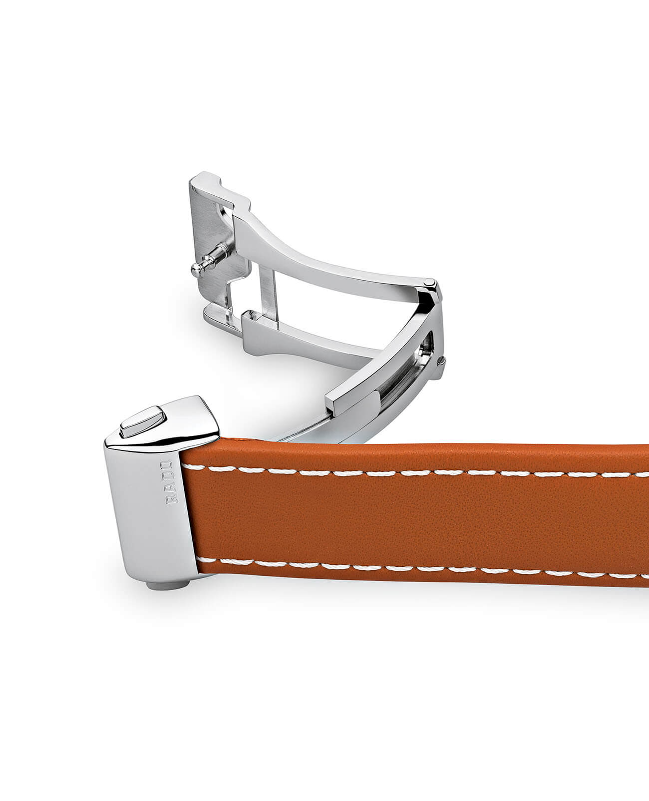Дизайн модели является действительно роскошным - светлый циферблат дополнен двумя окружностями, декорированными сияющими драгоценными камнями. Перламутровое окошко украшено 32 бриллиантами в 0,113 карат, а скелетонизированное отверстие, сквозь которое просматривается движение деталей механизма, инкрустировано 39 бриллиантами в 0,035 карат. Часы оснащены автоматическим калибром ETA C07.631 с увеличенным резервом хода до 80 часов. Сапфировое стекло с антибликовой обработкой. Корпус из плазменной керамикиВысокотехнологичная плазменная керамикаИнновационный материал, технология запатентована. Выплавление керамики осуществляется в печи при 20 000 °C, белоснежный материал под воздействием ультравысокой температуры приобретает уникальный блеск, присущий металлам.. Прозрачная задняя крышка. Ремешок из натуральной кожи с системой быстрой установки. Водостойкость 50 метров. Диаметр корпуса: 35 мм.