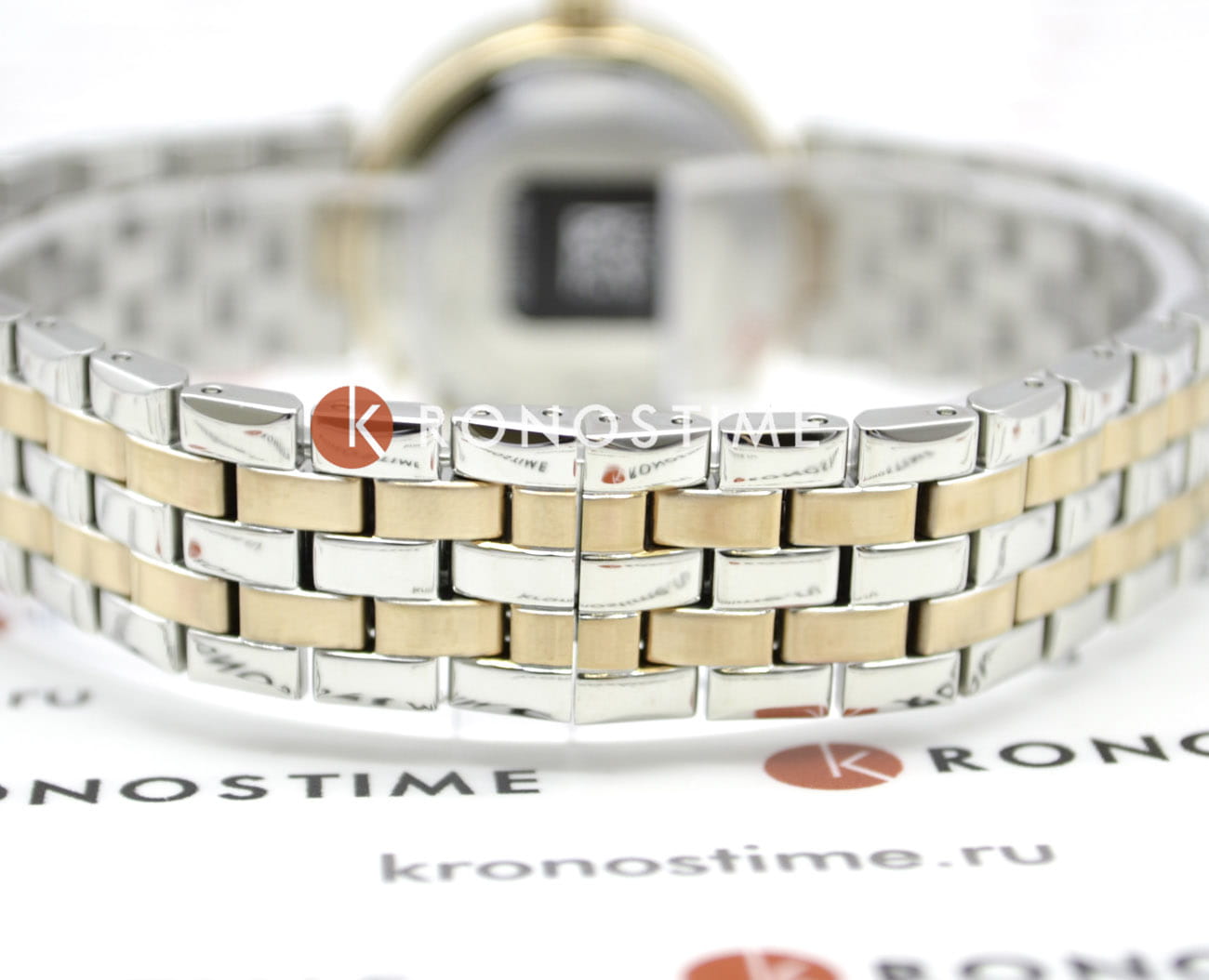 Премиальная модель в серебристо-золотом исполнении поможет в создании правильного имиджа и подчеркнёт ваш тонкий вкус. Часы оснащены пружинным механизмом, заводятся от движений активной руки владелицы. Их безупречную работу обеспечивает швейцарский автоматический калибр ETA 2671, отличающийся запасом хода до 38 часов. Сапфировое стекло отличается устойчивостью к появлению царапин. Инкрустация 4 бриллиантами в 0,008 карат. Корпус и браслет из нержавеющей стали 316L с частичным PVD-покрытиемPVDУльтратонкое покрытие наносится в технике вакуумного напыления, сочетает в себе нитрид титана особой прочности со слоем золота или оксида хрома. Несёт в себе декоративную или защитную функцию.. Водостойкость до 30 бар. . Отображение даты. Диаметр корпуса: 28 мм.