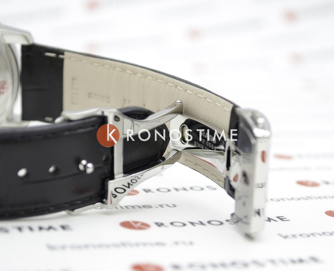 Серебристый циферблат имеет оригинальное исполнение функциональных счётчиков, модель станет запоминающейся деталью образа. Премиальный хронографХронографФункция позволяет измерять отрезки времени с особой точностью: часы, минуты, секунды. Верным признаком хронографа является наличие на циферблате 3 дополнительных окошек-счётчиков. измеряет время с отменной точностью, что осуществляется благодаря кварцевому швейцарскому калибру ETA E57.251. Сапфировое стекло с антибликовой поверхностью. Чёрный ремешок из натуральной кожи с имитацией рисунка кожи крокодила. Надёжный корпус из хирургической стали 316L. Водонепроницаемость 50 метров. препятствует случайному расстёгиванию. Отображение даты, секундомер. Диаметр корпуса: 42 мм.