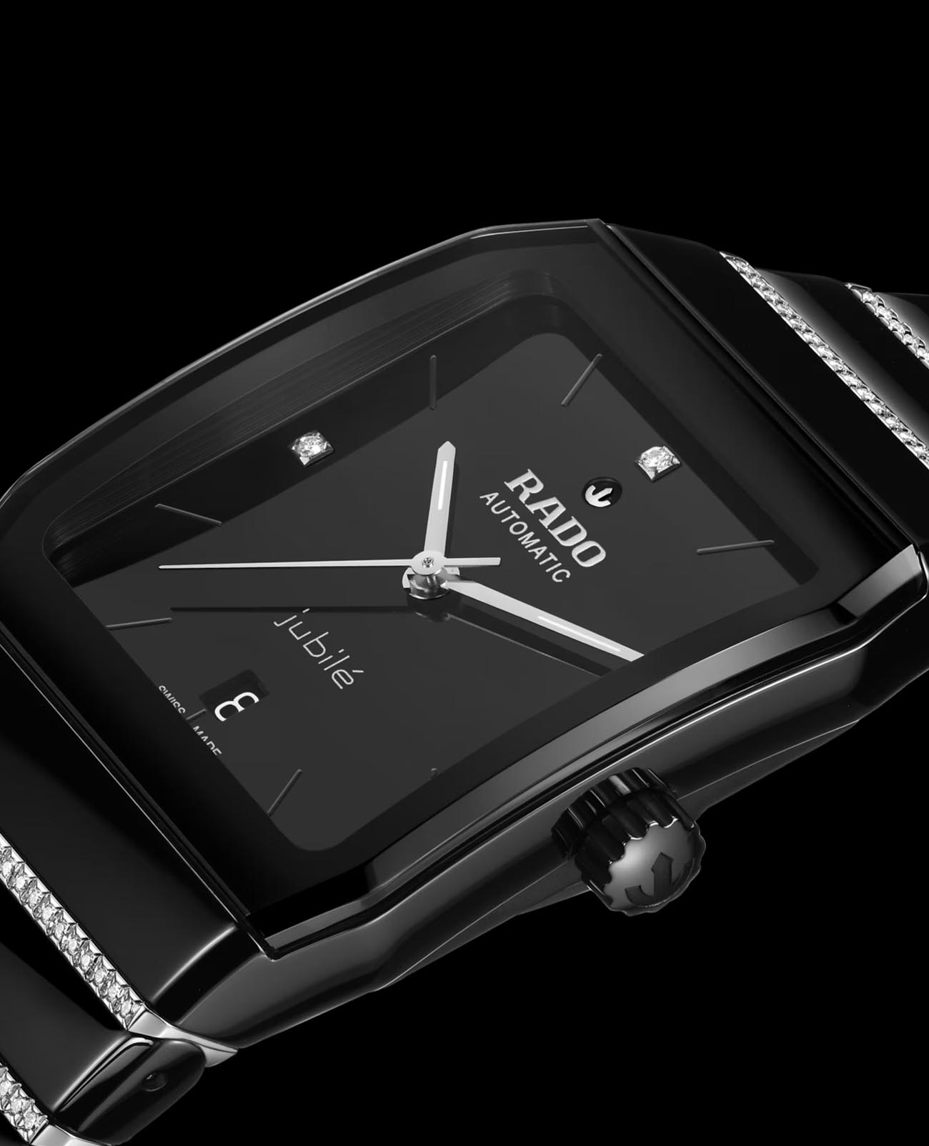 Мужские швейцарские механические часы Rado Anatom Automatic R10204712. Сапфировое стеклоСапфировое стеклоПрочный и надёжный материал из кристалла сапфира синтетического происхождения, характеризующийся особой твёрдостью и устойчивостью к царапинам и повреждениям. устойчивое к мелким механическим повреждениям. Корпус часов изготовлен из нержавеющей стали и керамики. Стрелки с люминесцентным покрытиемЛюминесцентное покрытиеПозволяет считывать показания времени в темноте. Производители наносят на стрелки, часовые индексы, безель или поверхность циферблата светонакопительный состав, дающий холодное свечение.. Венчает циферблат на отметке 12 часов культовый подвижный якорь, дополненный сдержанным окошком даты, расположенным на отметке 6 часов. Класс водозащиты: 50 метров, позволит защитить корпус от случайных брызг или капель дождя. Браслет из полированных черных высокотехнологичных керамических звеньев и полированных средних звеньев из нержавеющей стали, инкрустированных 162 бриллиантами Top Wesselton полной огранки, браслет тщательно закреплен на застёжке-бабочке с кнопкамиЗастёжка "бабочка"Такой вид застёжки дополняется предохранителями, помогающими избежать случайного раскрытия браслета. Обладают изящным исполнением. . 3 бриллианта Top Wesselton полной огранки и стрелки цвета родия с белым покрытием Super-LumiNova® создают сияющий контраст на фоне глубины циферблата.