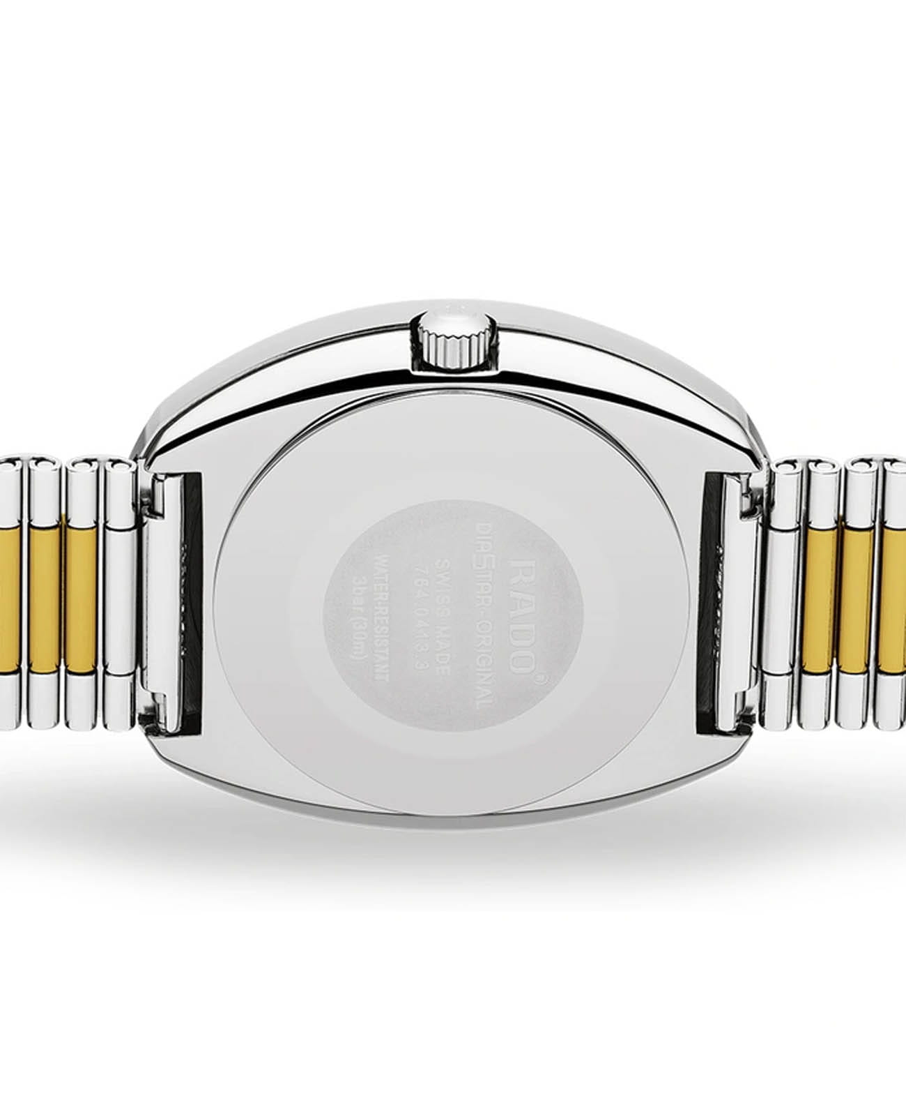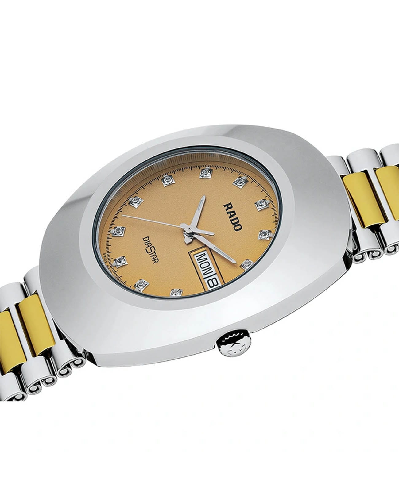 Мужские часы Rado The Original R12391633 с надёжным кварцевым механизмом. Корпус и браслет часов выполнены из нержавеющей стали. Стрелки с люминесцентным покрытиемЛюминесцентное покрытиеПозволяет считывать показания времени в темноте. Производители наносят на стрелки, часовые индексы, безель или поверхность циферблата светонакопительный состав, дающий холодное свечение. Super-LumiNova. Стальной браслет с частичным PVD-покрытиемPVDУльтратонкое покрытие наносится в технике вакуумного напыления, сочетает в себе нитрид титана особой прочности со слоем золота или оксида хрома. Несёт в себе декоративную или защитную функцию. на раскладной застёжкеРаскладная застёжкаТакой тип застёжки используется только на браслетах из металла. Она никогда не раскрывается полностью, происходит разделение на 2 и более частей. Раскладывающая застёжка снизит вероятность потери часов к минимуму.. Класс водозащиты: 30 метров, позволит защитить корпус от случайных брызг или капель дождя. Циферблат инкрустирован сапфирами. Окошки дня недели и даты находятся в положении 3 часа.