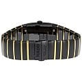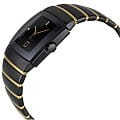 Часы Rado Sintra R13724711, произведение искусства и технологическое чудо, станут прекрасным дополнением к коллекции любого мужчины. Эти швейцарские часы оснащены кварцевым механизмом с указателем даты и тремя стрелками, заключенным в бочкообразный корпус из высокотехнологичной керамикиВысокотехнологичная керамикаИнновационный запатентованный Rado материал с гладкой или матовой поверхностью. Керамика за счёт кристаллической структуры обладает повышенной устойчивостью от возникновения царапин. Материал способен принимать температуру тела человека, обеспечивая невероятный комфорт при ношении.. Сапфировое стеклоСапфировое стеклоПрочный и надёжный материал из кристалла сапфира синтетического происхождения, характеризующийся особой твёрдостью и устойчивостью к царапинам и повреждениям. устойчивое к появлению царапин, обладающее высокой прозрачностью. Класс водозащиты: 30 метров, позволит защитить корпус от случайных брызг или капель дождя. Циферблат декорирован 4 бриллиантами, узкие звенья браслета - накладки из 18-каратного золота18-каратное золотоОбозначение по каратной системе пробирования, оно показывает, сколько драгоценного металла содержится в изделии. 18 карат - в составе 75% чистого золота, соответствует 750 пробе.