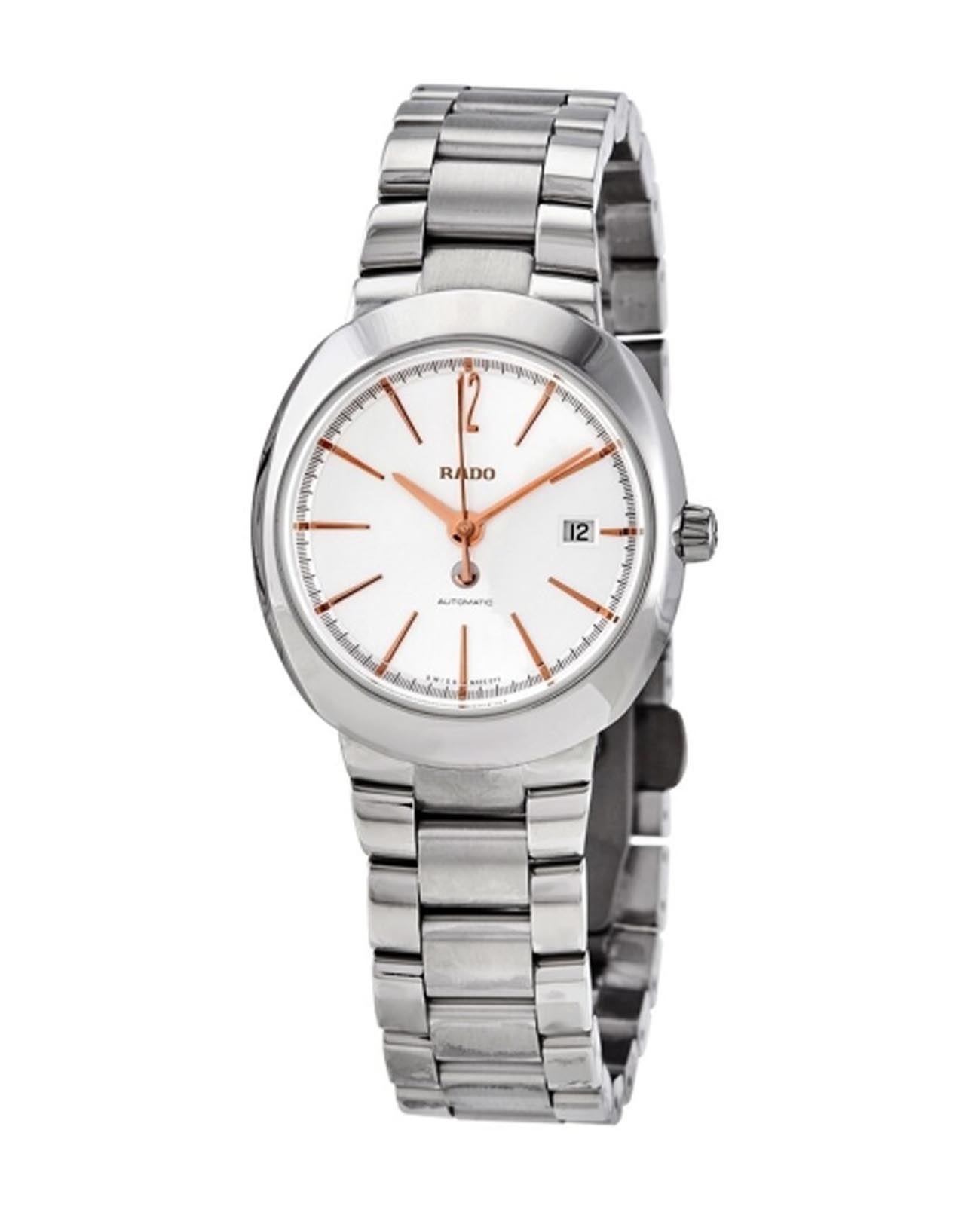 Женские механические швейцарские часы с автоподзаводом Rado D-Star R15514113. Сапфировое стеклоСапфировое стеклоПрочный и надёжный материал из кристалла сапфира синтетического происхождения, характеризующийся особой твёрдостью и устойчивостью к царапинам и повреждениям. устойчивое к мелким механическим повреждениям. Корпус часов изготовлен из углеродистой диффузной стали. Окошко даты находится в положении 3 часа. Класс водозащиты: 100 метров, позволит плавать, нырять и заниматься другими водными видами спорт. Браслет нержавеющей стали на раскладной застёжкеРаскладная застёжкаТакой тип застёжки используется только на браслетах из металла. Она никогда не раскрывается полностью, происходит разделение на 2 и более частей. Раскладывающая застёжка снизит вероятность потери часов к минимуму..