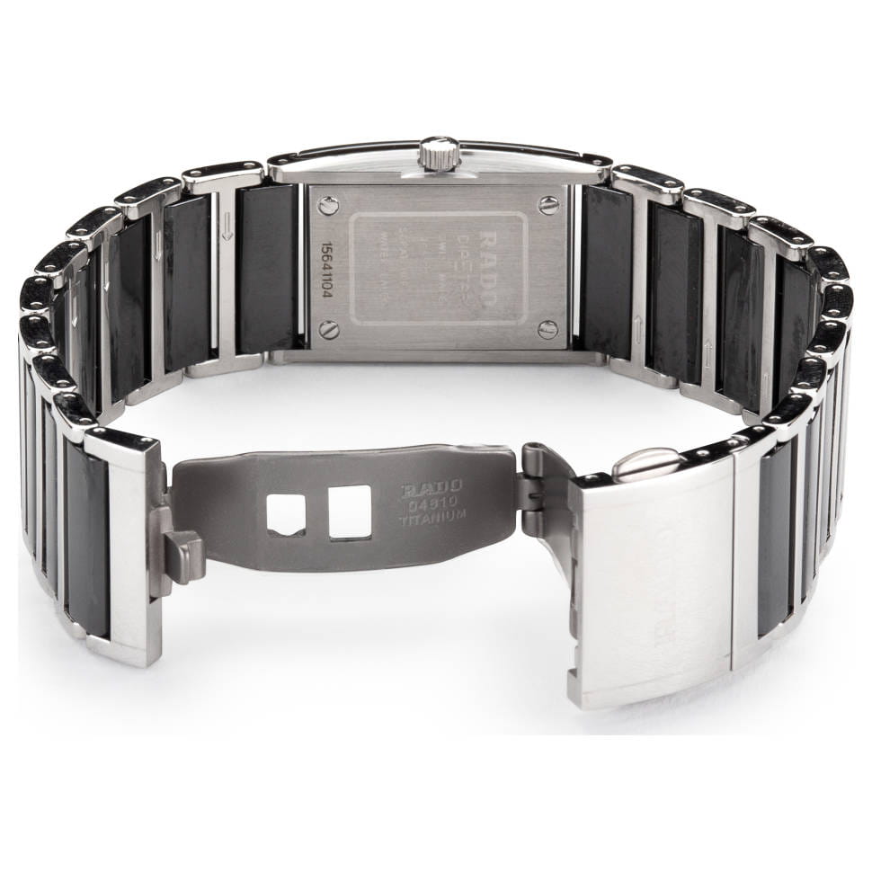 Женские часы Rado Integral R20786752 с надёжным кварцевым механизмом. Сапфировое стеклоСапфировое стеклоПрочный и надёжный материал из кристалла сапфира синтетического происхождения, характеризующийся особой твёрдостью и устойчивостью к царапинам и повреждениям. устойчивое к мелким механическим повреждениям. Корпус выполнен из нержавеющей стали. Класс водозащиты: 30 метров, позволит защитить корпус от случайных брызг или капель дождя. Стальной браслет с вставками из высокотехнологичной керамикиВысокотехнологичная керамикаИнновационный запатентованный Rado материал с гладкой или матовой поверхностью. Керамика за счёт кристаллической структуры обладает повышенной устойчивостью от возникновения царапин. Материал способен принимать температуру тела человека, обеспечивая невероятный комфорт при ношении. на раскладной застёжкеРаскладная застёжкаТакой тип застёжки используется только на браслетах из металла. Она никогда не раскрывается полностью, происходит разделение на 2 и более частей. Раскладывающая застёжка снизит вероятность потери часов к минимуму.. Циферблат декорирован 6 бриллиантами.